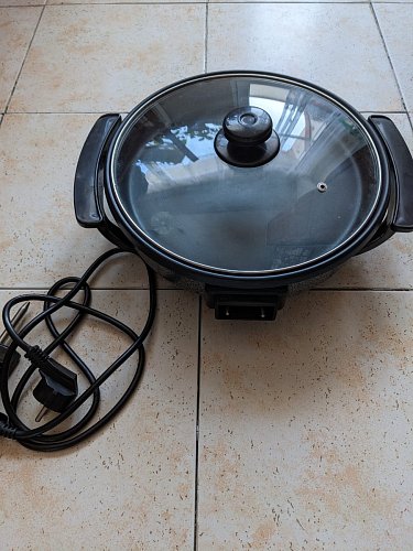 Nabízím tuto pánev podle všech vyobrazení (viz i štítek), nepoužívaná, plně funkční. Průměr 31 cm, hloubka 5 cm, příkon 1400 W. Lze zaslat též poštou nebo přes balíkovnu za úhradu nákladů.
