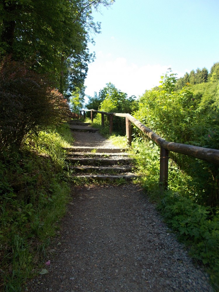 Vystupujeme na zastávce a cestou přes most je vidět půjčovna lodí. Tentokrát se nedoporučuje vyplout, bylo po silném dešti. Před námi se tyčí schody v dosti nehezkém stavu a já si představuji, jak vcházím do hradu porostlém šípkovou růží. Ale to byl jen první dojem. Okolo se zelenají hluboké lesy, na téhle straně hradu převážně listnaté. Ještě pohled vzhůru ze schodů a už tu máme vstupní bránu. Malé, ale útulné nádvoří s nezbytnou pokladnou a v rohu čekají dravci na malou přehlídku. Pohled na kalnou Sázavu po deštích a už je tu průvodce - jdeme dovnitř.