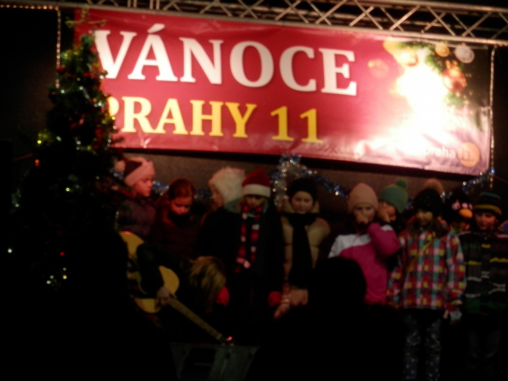 Dnes jsem po příjezdu z práce vystoupila už takřka za tmy na konečné stanici metra Háje. Než jsem stačila nastoupit do sídlištního autobusu, zaujal mě hlas zvonů na věžičce zdejšího Komunitního centra Matky Terezy. Před ním stálo několik decentně osvětlených prodejních stánků a za nimi pódium s nápisem Vánoce Prahy 11.