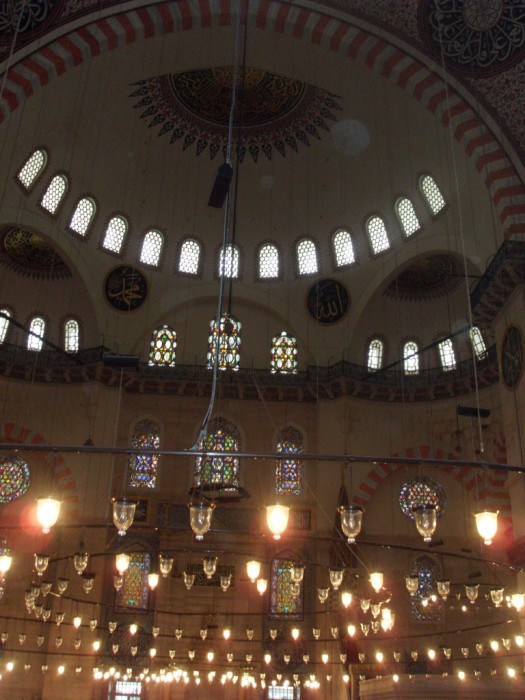 Naším dnešním cílem je BOSPOR. Cestou k přístavu zastavujeme a jdeme se podívat na mešitu. Než vystoupím já (jsem uprostřed autobusu, za mnou jde ještě spousta lidí), delegátka s tureckým průvodcem je už téměř v nedohlednu. Utíkat nemíníme. Nejsem na závodech, ale na dovolené. Doufám, že se s ostatními najdeme a sejdeme. Trošičku se koukám kolem a taky trošku fotím. Potřebuji přece přátelům ukázat, “jaké je to ve světě“. Přicházíme k Sulejmanově mešitě. Delegátka už dávno mluví. Snažím se aspoň něco zaslechnout.