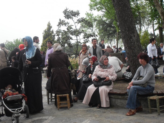 Po obědě nasedáme do autobusu a jedeme na nejvyšší horu v Istanbulu - na Camilcu. Zde se dostáváme po jednom z mostů spojující Evropu s Asií suchou nohou. Máme možnost pozorovat Istanbul. Trochu opar, ale přesto je vidět opravdu dost. Procházíme se po vrcholu. Spousta dětí si hraje v jakémsi dětském koutku na nejrůznějších atrakcích či průlezkách v borovicovém lese. Starší lidé či rodiče s malými dětmi sedí v čajovnách či v zahradních restauracích. U malých stolečků na malých židličkách. Někteří hrají šachy, jiní pro mne zcela neznámé hry. Obyvatelé Istanbulu zde prý jezdí za klidem a odpočinkem. Je zde spousta lidí, takže klid? Nevím, asi jen od hluku aut. Je zde ale dobrý vzduch. Moc dobře se zde dýchá.