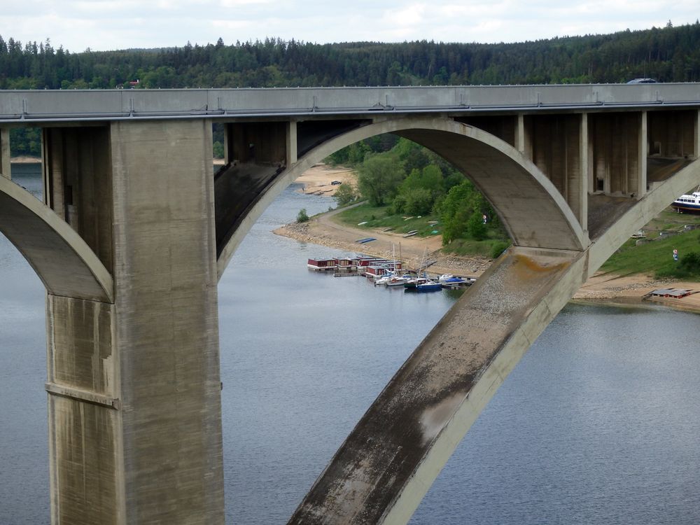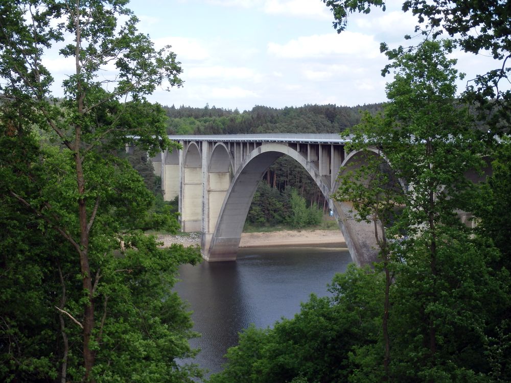 Počasí přálo obzvlášť v sobotu, a tak jsme se vypravili na celé odpoledne na kola. Krajina v okolí Bechyně je celkem rovinatá, a tak přibližně čtyřicetikilometrový okruh nebyl pro žádného ze sportovních veteránů problémem. První větší zastávku jsme si dopřáli ve dvanáct kilometrů vzdálené Bechyni. „Kluci“ se zastavili na náměstí v hospůdce, aby alespoň chvíli fandili našim hokejistům, a my „děvčata“ jsme se usadila v zahrádce cukrárny u zmrzlinových pohárů. Po odpočinkové pauze jsme už zase společně vyrazili na prohlídku města. Centrum Bechyně je krásně opravené, opravuje se postupně i zámek. Novou tvář dostává i lázeňská část města. Mne ale uchvátil hlavně pohled od kláštera na most, který se na okraji Bechyně klene přes údolí řeky Lužnice. A protože v okolí je zajímavých mostů hned několik, napadlo mne věnovat tento příspěvek jim.