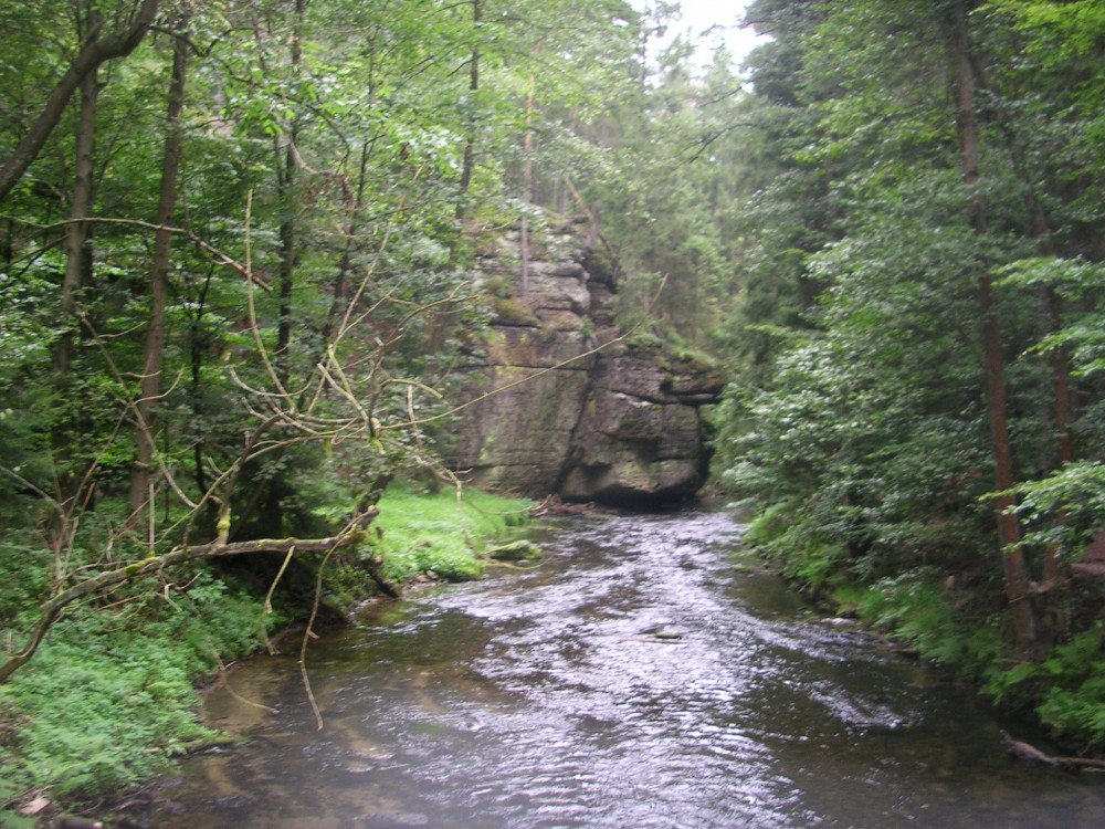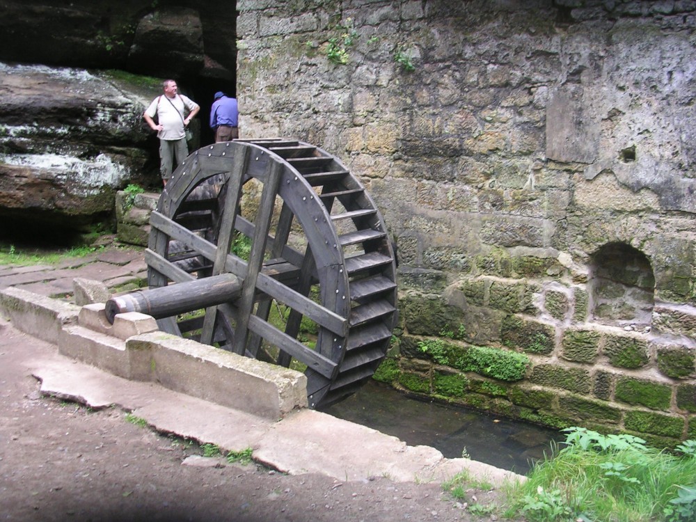 Pokladna hradu je až po překonání prvních schodů. Nahoře je bývalá poustevna a i poustevník, co hledí do kraje. Ve sloupu je ještě i zámek. Ač je v něm dnes domov důchodců, jedem se na něj podívat. Je hezky opravený, za zámkem je ještě park. No, mají to tu důchodci hezké. Na návsi před zámkem je ještě kostelík a fara. Krásné stromy ještě podporují to krásné, co tu je. Ze Sloupu pokračujeme přes Nový Bor okolo bývalého Crystalexu do Jiřetína. Po příjezdu se dáváme vlevo. Jedeme ještě na jeden hrad. Teda na zříceninu. Jmenuje se Tolštejn. Vede k němu klikatá cesta a nahoře je hospůdka. Vyjíždíme až nahoru, do hradu. Autíčko necháváme pod hospůdkou a jdeme navštívit hospůdku i hrad. V hospůdce se dobře sedí při pivku. A samozřejmě při limonádě. Potom přichází nějaký pán, a že prý potřebuje uvolnit místo, co stojí modrásek. Prý mu přijede Tatra s pískem. Opouštíme hrad a míříme už k poslednímu místu, k ubytování do Jetřichovic. Nejprve ale ještě průjezd Chřibskou. Na konci Jetřichovic odbočení vlevo a stojíme u Starého mlýna. Přichází mladá paní a říká, že si můžem sjet dolů, těsně k mlýnu. Řídíme se její radou. Čeká na nás a ubytovává nás v prvním patře mlýna, teda samozřejmě bývalého. Dostáváme pokoj, no teda spíš apartmán. Pod oknem nám bublá Kamenice s malým vodopádem, který hlídají dva vodníci. Takže přichází hygiena a odpočinek. Potom dolů, do restaurace se najíst. Otevřeno mají ale jen pro ubytované. Ráno na snídani a večer na večeři. Zatím moc hostů tu není, ale je všední den. Na víkend se to jistě zlepší. My jdeme nahoru vytvořit polohu na ležato.