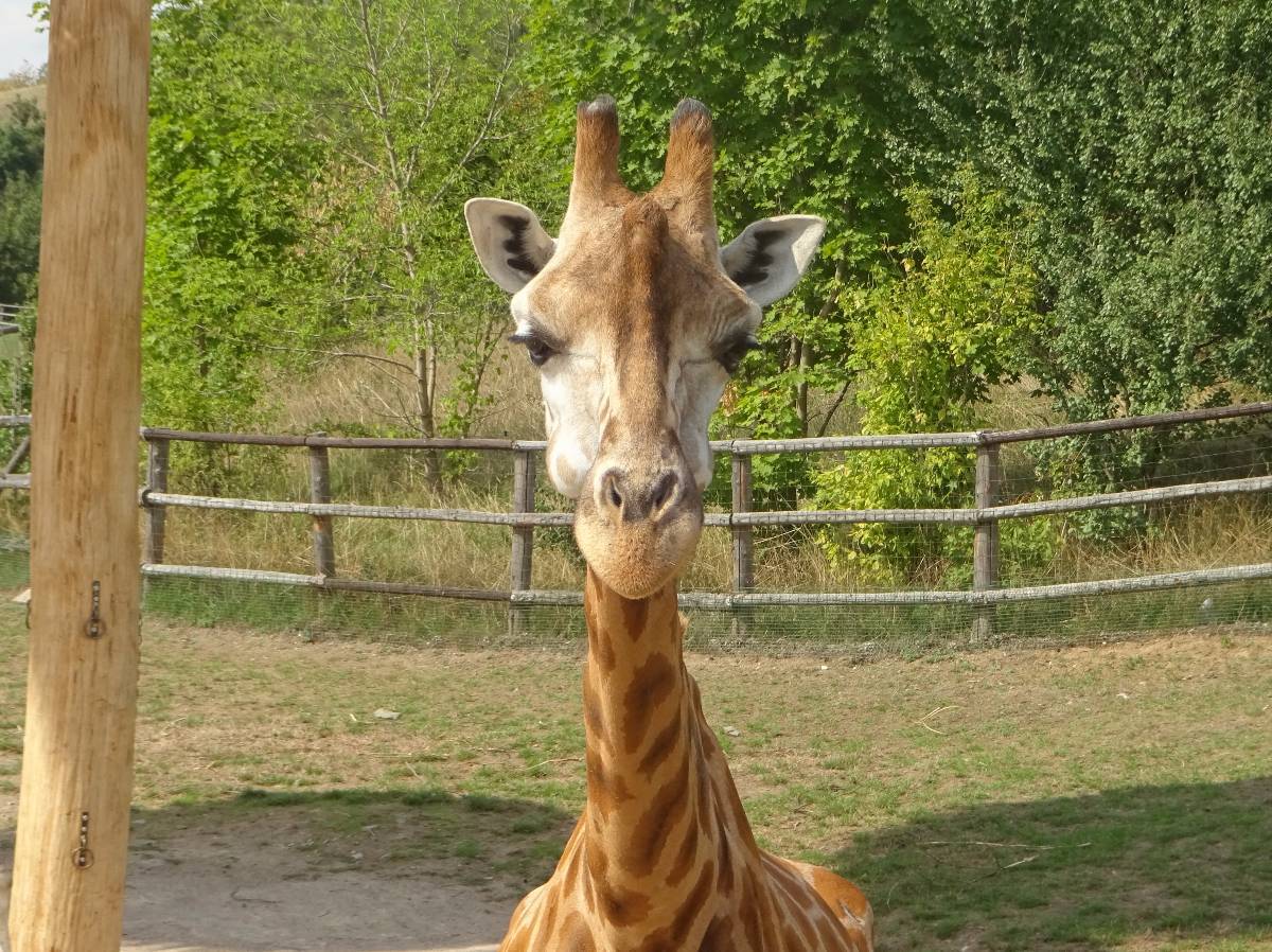 Žirafy, zvané holky, jsou navyklé na určitý režim a velmi nerady mění zvyky. I na tu plošinu bez návštěvníků si zvykaly rok. Dívali jsme se prakticky z očí do očí. Mají opravdu úžasné řasy. Slouží jim k ochraně očí při okusování trnitých akácií. Ošetřovatelka nám podávala větve a my jsme je nabízeli žirafám. Větev se musela držet pevně, pořádně to zatáhlo, když obtočila jazyk kolem větve a listy si pěkně stáhla. Pak jsme větev pustili na zem a v ruce nám přistála další. Nesměli jsme se ani ohnout, protože žirafy by se mohly polekat prudšího pohybu a utéct. Tak jsme si pěkně krmili a vyslechli si přitom zajímavosti z chovu a života žiraf. Byl to opravdu zážitek.