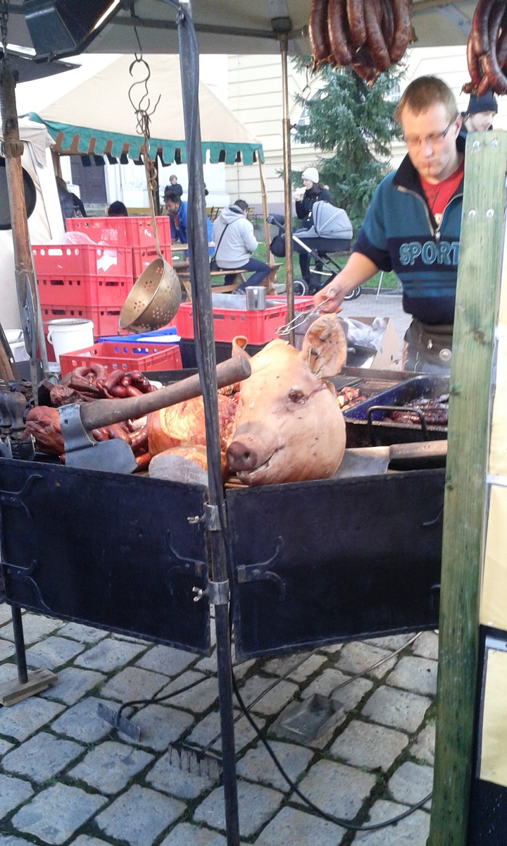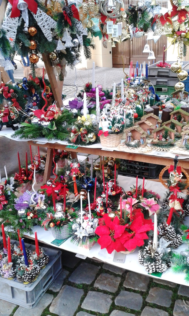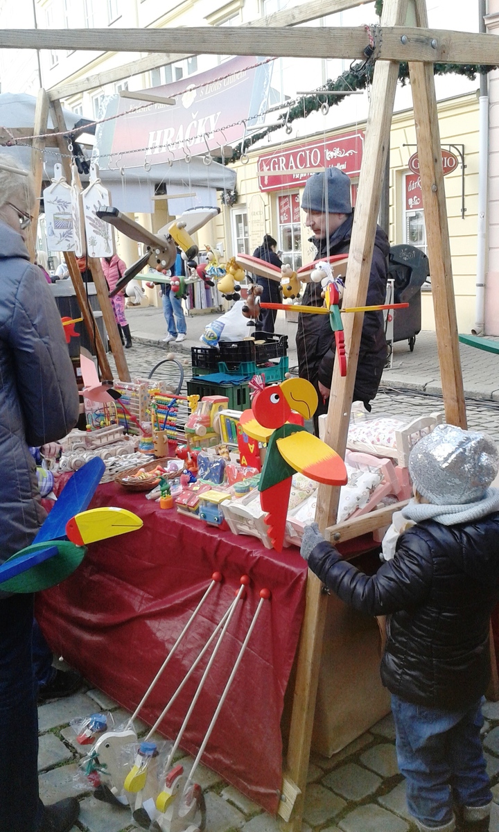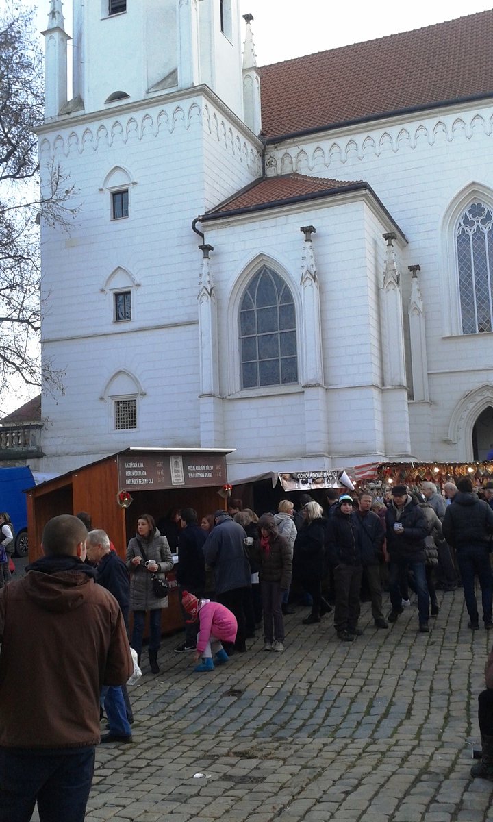 Dnes bylo náměstí zaplněno dřevěnými či plátěnými boudami a stánky, ve kterých se nabízelo vše, co k Vánocům patří - uzené domácí dobroty, sladké perníčky i staročeský  trdelník. Pozadu nezůstala ani nabídka drobných dárků - obrázků ze sušených květin i s ukázkou, jak se takový obrázek tvoří, jmelí, lesklé a třpytivé bižuterie, kterou okukovaly zejména mladičké dívky a vybíraly si, co jim bude  nejlépe slušet. Ovšem největší úspěch měly stánky s medovinou a horkým svařákem, který se prodával v hrnečcích s vánoční tématikou v barvě červené nebo zelené. Neodolala jsem ani já a vybrala si červený hrneček s voňavým nápojem. Dokonce jsem při tom zažila drobnou příhodu. Při placení jsem si spletla dvacetikorunu s desetikorunou ve svůj neprospěch. Poctivý prodejce to zjistil a přebytek mně vrátil. Poděkovala jsem mu za jeho poctivost, která se dnes jen těžce hledá.