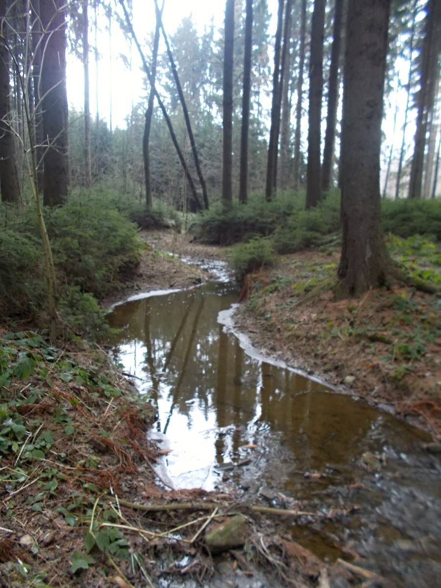 Pro dnešek to vezmem zkratkou. Kousek cestou, pak přes pole, přesně tam, kde byla ekologická katastrofa. Navrtané potrubí. Je stále pod dozorem. Tady je ještě stanoviště pro kontrolní vrty. V lese, hned v blízkosti štičího rybníka, vrty pro sondy na odebrání vzorků. Jsou to už dva roky a stále je tato část přírody kontrolována.