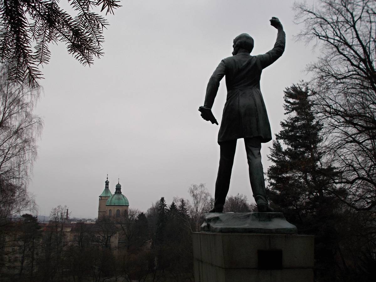 Parkem okouknem jen střechu zimního stadionu a kolem sochy Karla Havlíčka projdeme dál. A to už máme asi osm kilometrů v nohách, a protože fouká, domů se svezem autobusem.