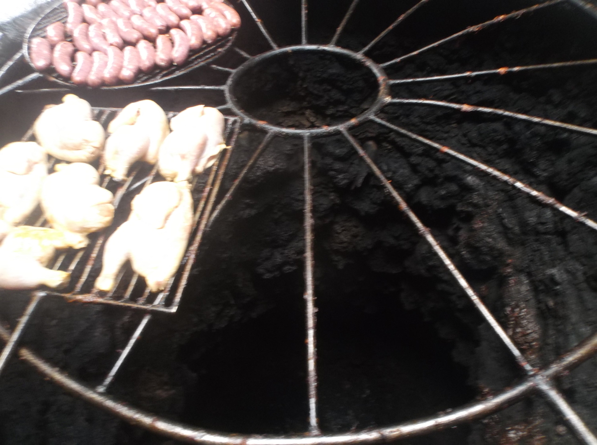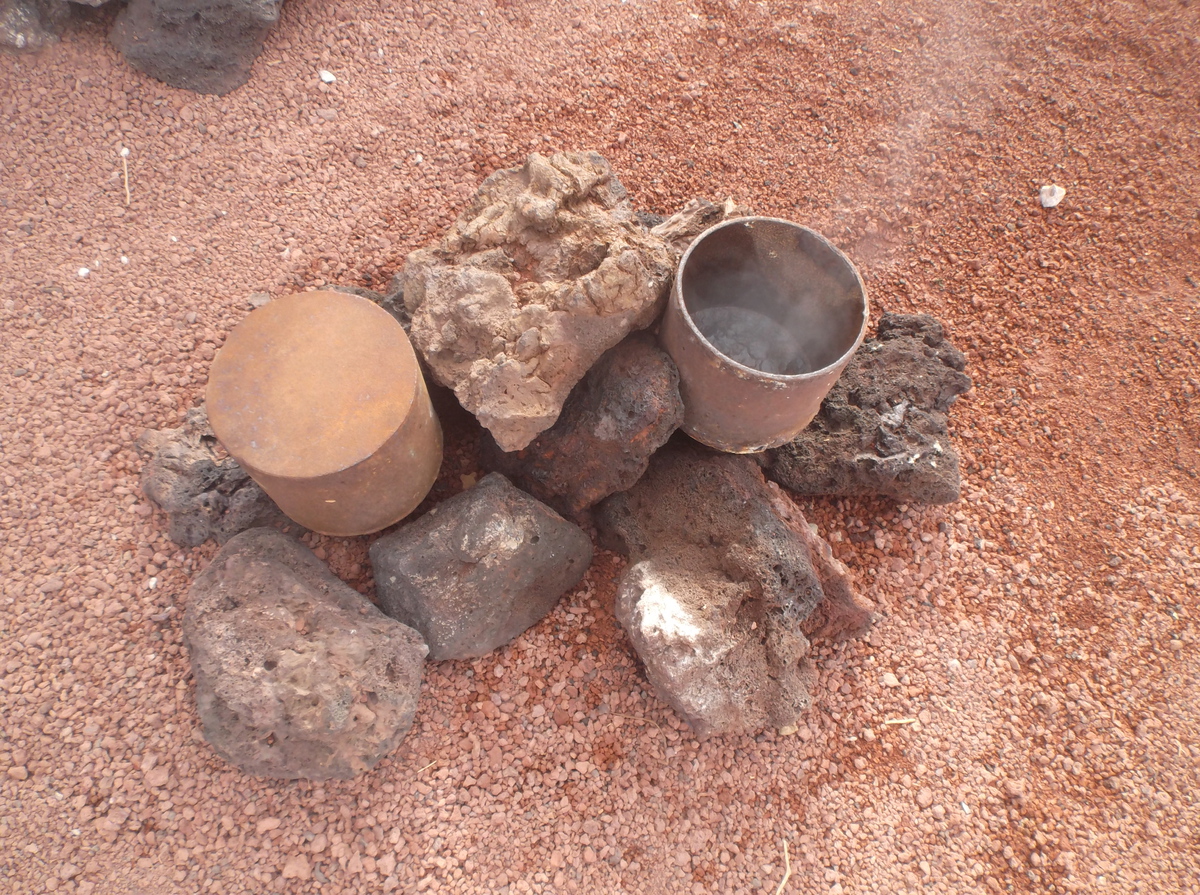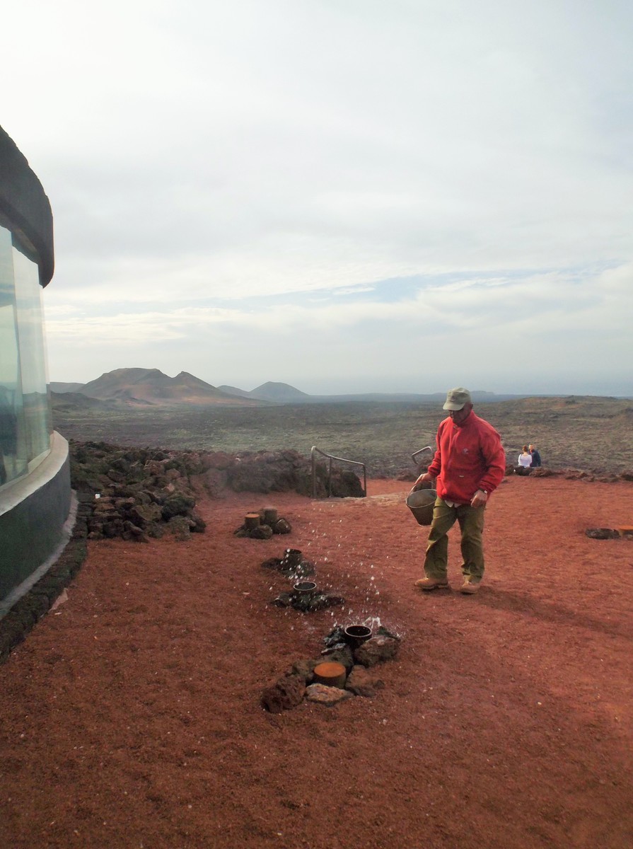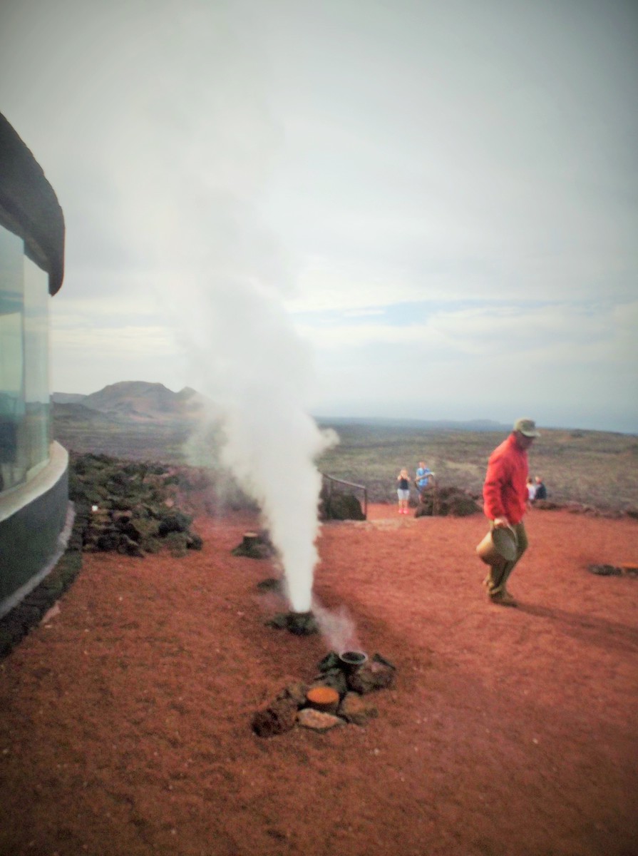 Na přírodním grilu v restauraci, který připomíná studnu, šéfkuchaři grilují speciality. Oběd byl vynikající, i když připravovaný a konzumovaný pro nás na trochu moc horké půdě. V šesti metrech je teplota 400 stupňů. Griluje se jen na žáru z hlubin země. Žhavé magma je v komorách asi 4 km pod povrchem země.