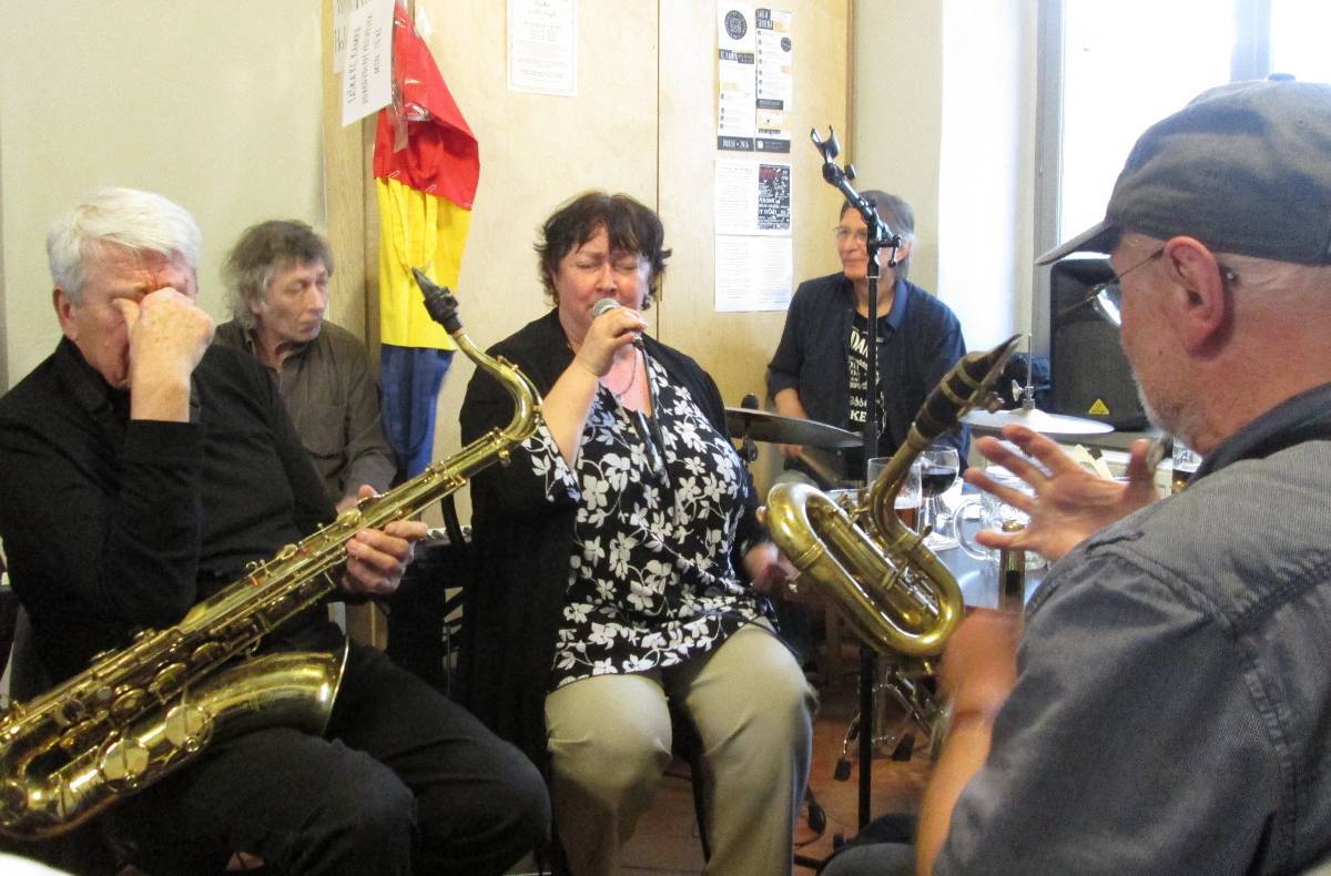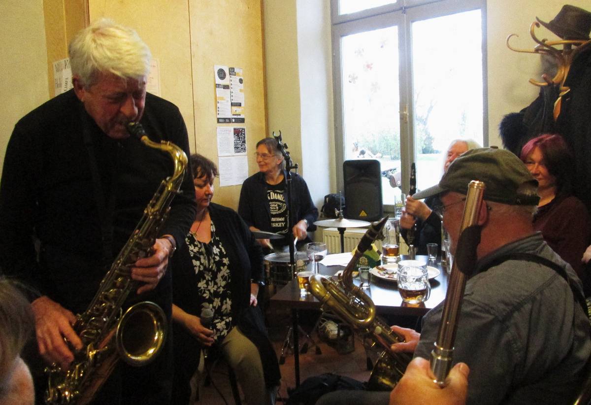 Ta poletovala příjemně vyhřátou místností v neformální atmosféře. Orchestr, složený ze zdravého jádra hudebníků zralého věku, postupně doplňovali další. Nakonec dorazila i slíbená zpěvačka, třešnička na jazzovém dortu.