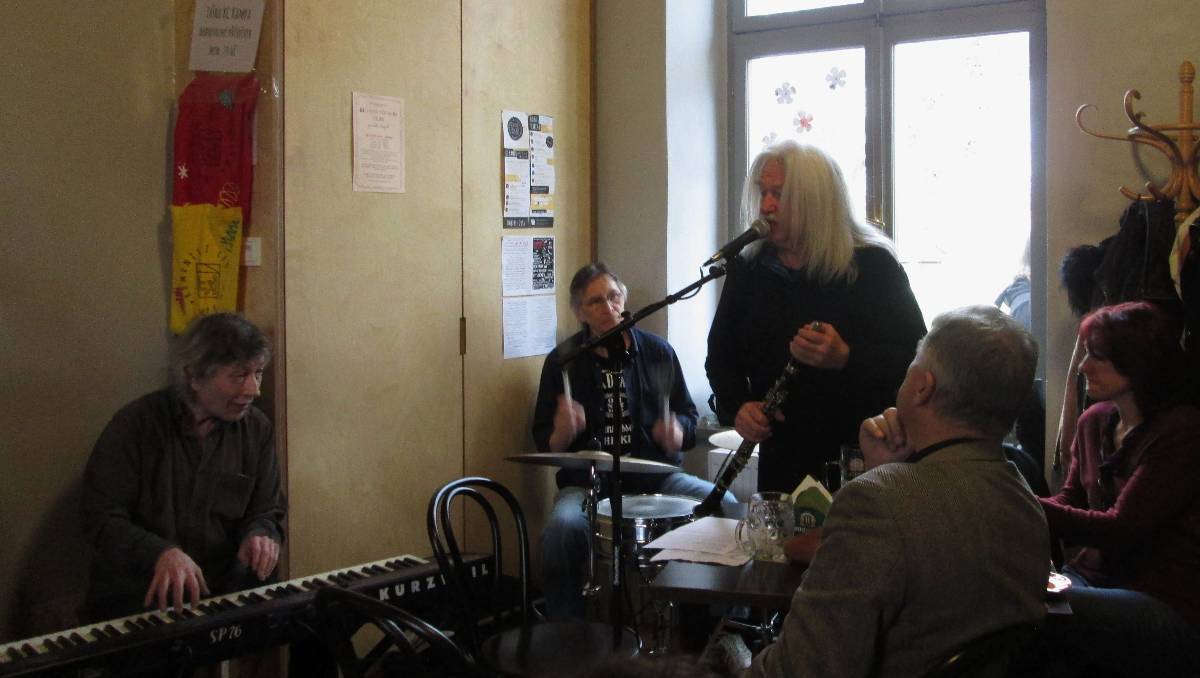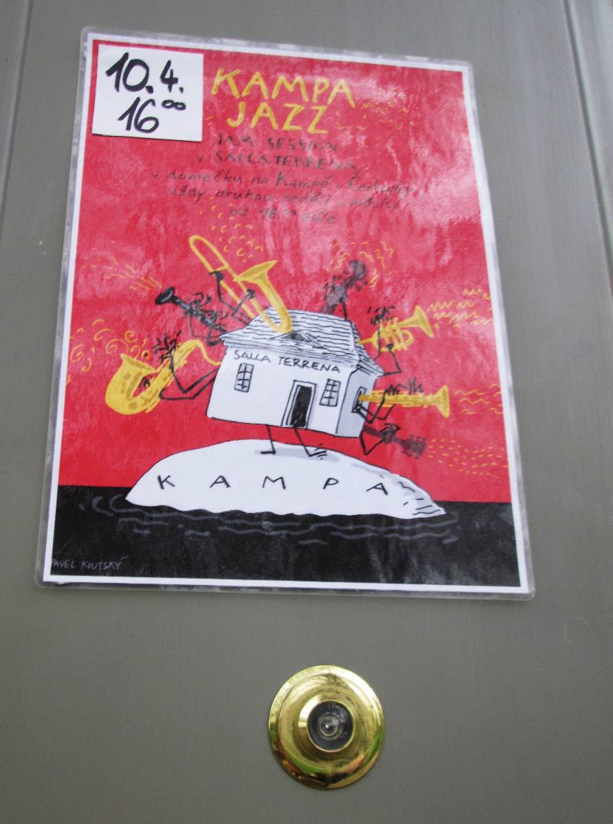 Unavení a prochladlí jsme už chtěli procházku po jarní Kampě skončit, když před námi cedule na malém domečku u Sovových mlýnů - KAMPA JAZZ od šestnácti hodin. Naštěstí je to místo trochu odlehlé a ukryté před nájezdy zahraničních tlup. Uvnitř bylo útulno a taky narváno. Mezi malostranskými usedlíky zřejmě oblíbená kulturní rozkoš. Takže se tam prostě téměř všichni znali. My byli přivandrovalci. Ze všeho udivení a nadšení. I z fantastického domácího ořechového perníku. Ale hlavně z muziky.