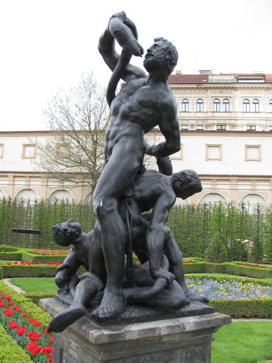 Cestička k jezírku je lemovaná sochami antických božstev od holandského sochaře Adriana de Vries, usazeným od doby Rudolfa II. na Malé Straně. Jsou zde kopie, originály odvezeny v r. 1648 jako válečná kořist.