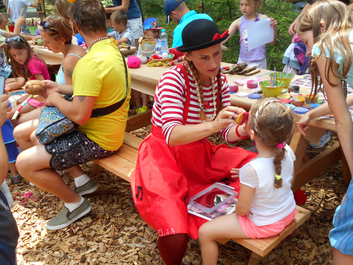 A hurá, jdeme! Za hudby pokračujete, kde klauni na chůdách na Vás požadují podlézt pod nohama, jsou zde také různé výběžky, kde se odreagujete, odpočinete a kouknete dolu, nahoru, ach jó! Fotím krajinu, ale začínají se mi líbit nebojácné děti, které pózují na vyřezávaných sochách, a tak si říkám, tady zůstanu. Ti odvážlivci jdou různými pohyblivými nástrahami a děti potom spouští toboganem dolů. Já jsem "Stezku nepokosila", i tak jsem byla ráda, že jsem prožila část pochodu.