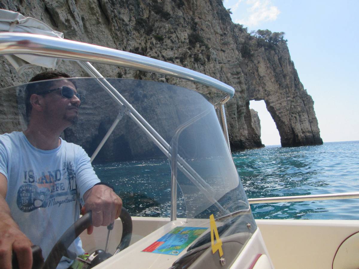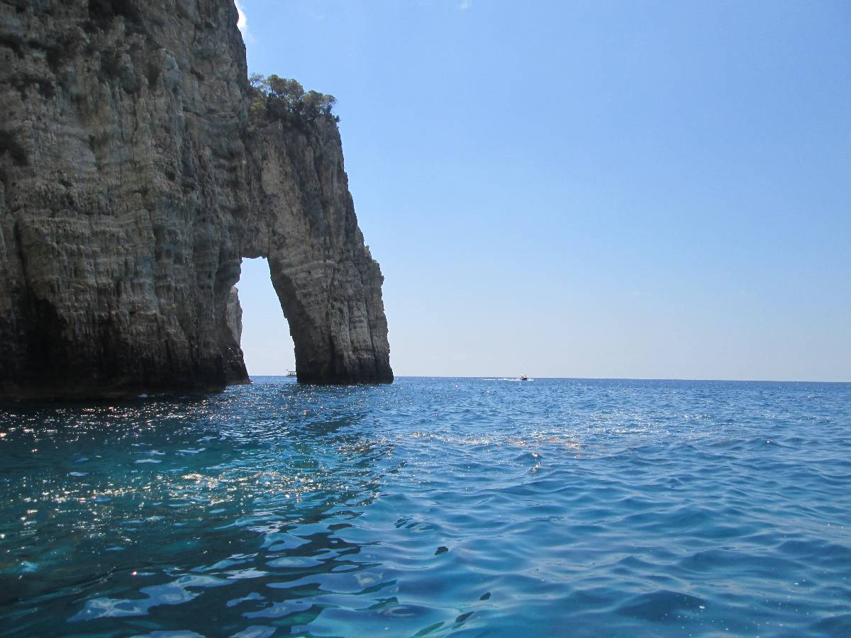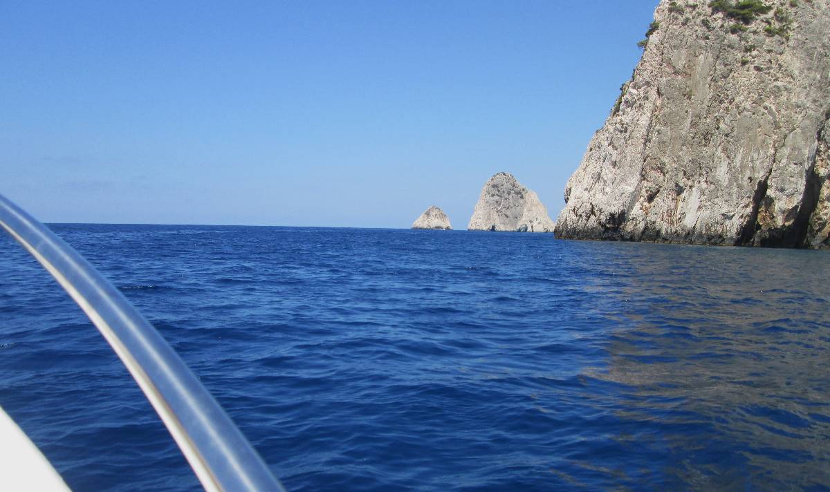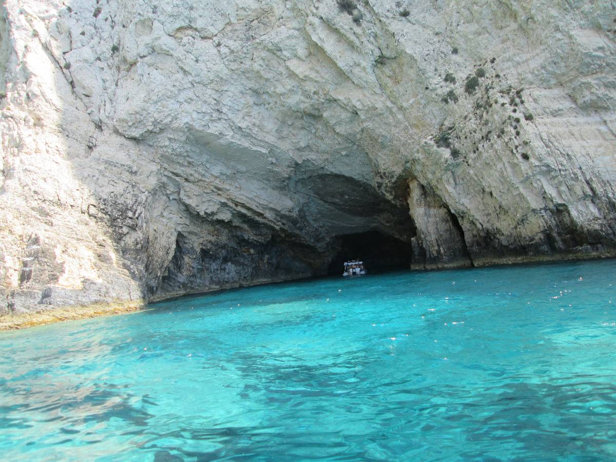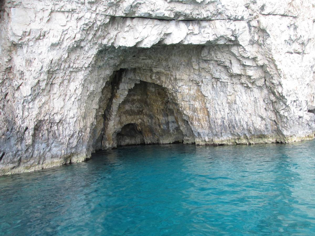 Želvy je možné taky spatřit přímo v moři. Když se vynořují, aby se nadechly. Všichni, včetně mé vnučky, z vypůjčené lodě, karety zahlédli. Já ne. Než jsem k nim nasměrovala zrak, zmizely. Ještěže jsem vyfotila Modré jeskyně a užila si božskou koupel v tyrkysové vodě pod skalnatým jeskynním stropem.