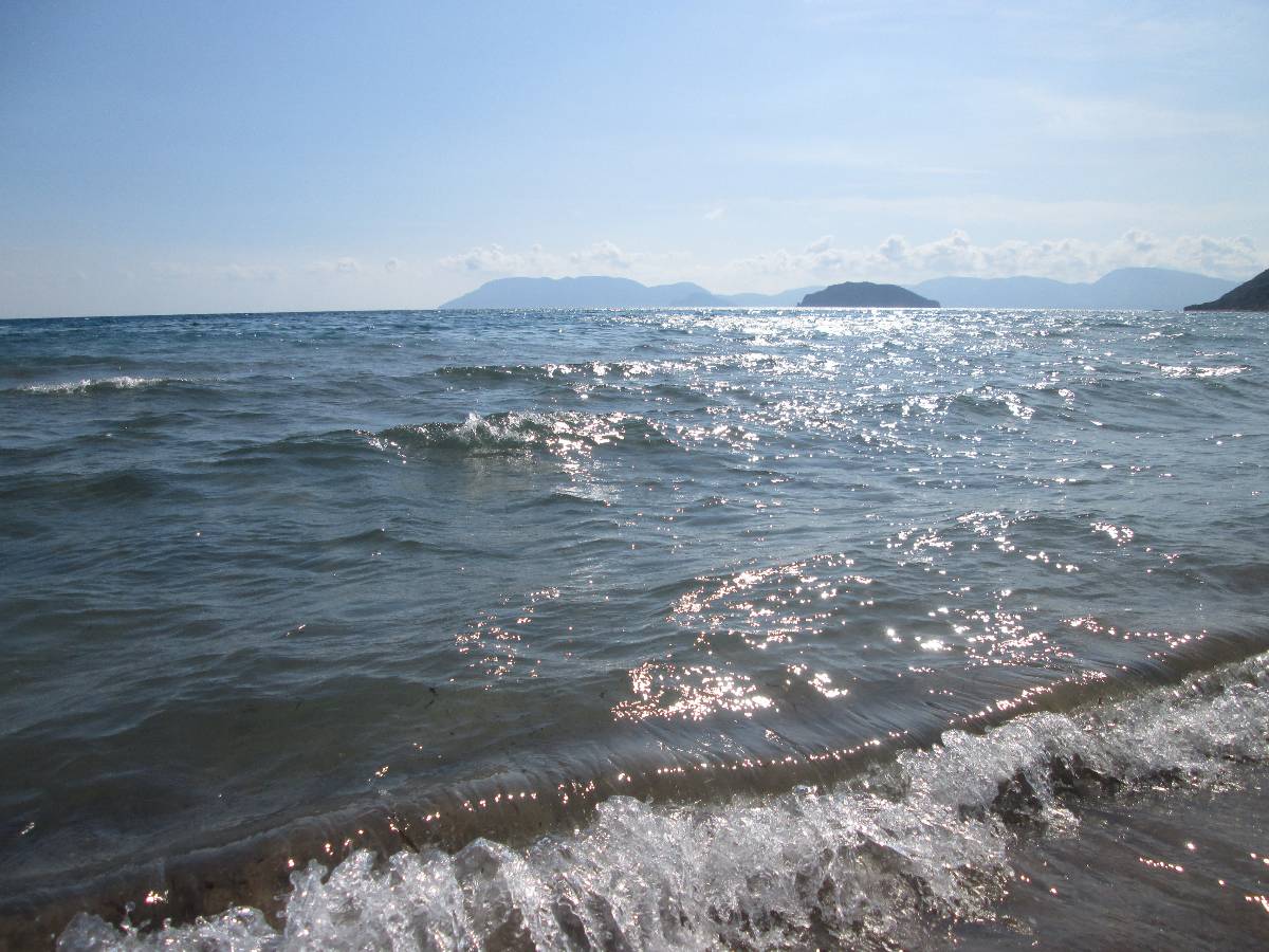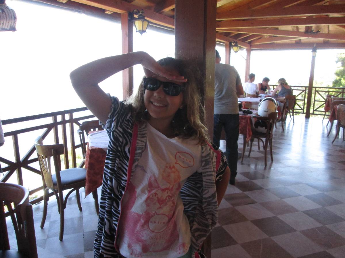 Vyhrabala jsem se na snídani dost otrávená. Ale překrásný výhled z terasy na Marathonissi (Želví ostrov) mi nastartoval dobrou náladu. Zrovna náš přítel Spiros, správce objektů, popisoval slušnou angličtinou cestu na další zajímavou pláž Gerakas. Tam se člověk může pohybovat jen těsně u moře, které je mělké a teplounké. Jinak celý prostor patří želvám – Caretta Caretta. Vylézají v noci, aby zahrabaly vajíčka do teplého písku.