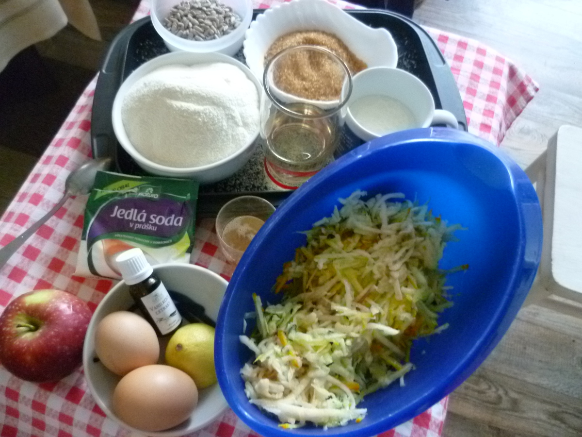 2 hrnky nahrubo nastrouhané cukety + 1 větší jablko