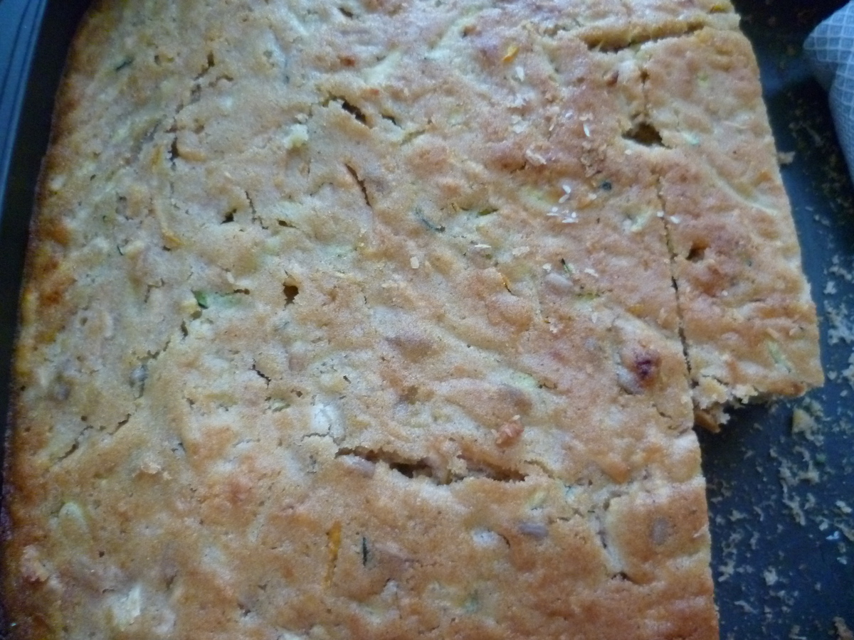 trochou horké vody /asi 1dcl/, přidala jsem citr.šťávu, vanil. esenci, mouku se sodou, cuketu a sluneč. semínka.