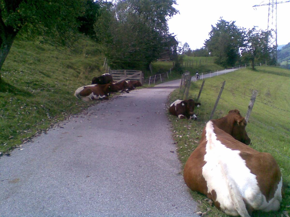 Jak typicky rakouský je alpský dům se záplavou květin a horami na obzoru (5) a jak zlověstně vypadá tunýlek (6), kterým cyklisté pouze projedou a nemusí se štrachat přes kopec. Kde už Rakušany nenapadlo nic jiného, udělali aspoň dvouposchoďový tunel, tedy pouze pro auta (7). Projížděli jsme vesničkami roztodivných názvů (8), takže ze tří se dal složit docela hrůzostrašný český příběh. Jmenovaly se totiž Kuchl, Au a Puch (představoval jsem si tu hroznou vraždu, na níž se přišlo až po čase – ty tři názvy to prostě celé vystihly!).