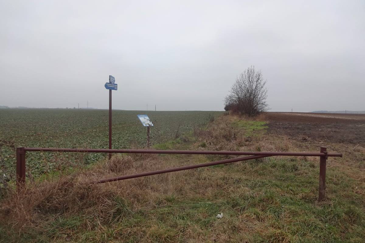 V Roudnici nad Labem bydlím 32 let, ale dokud jsem chodila do práce, neměla jsem čas na takové aktivity jako teď. A proto to není tak dlouho, co jsem jednou za městem narazila na závoru. Za závorou vede cesta do polí, jistě dávno nepoužívaná, zarostlá vysokou trávou a místy i křovím. Leč ve vysoké trávě byla na sloupku připevněná tabulka, která mě zaujala a přiměla mě cestu si projít. Nebyla jsem zklamaná.