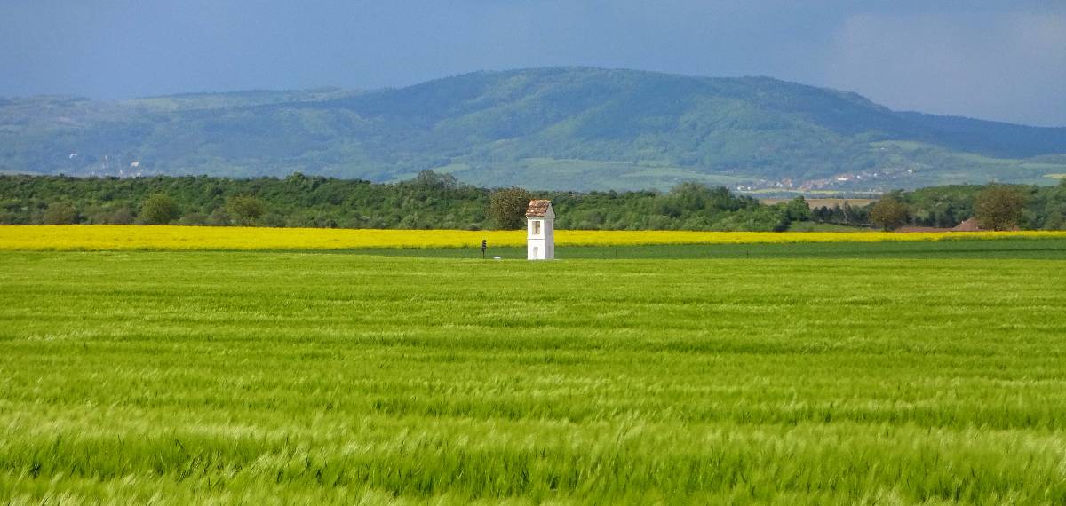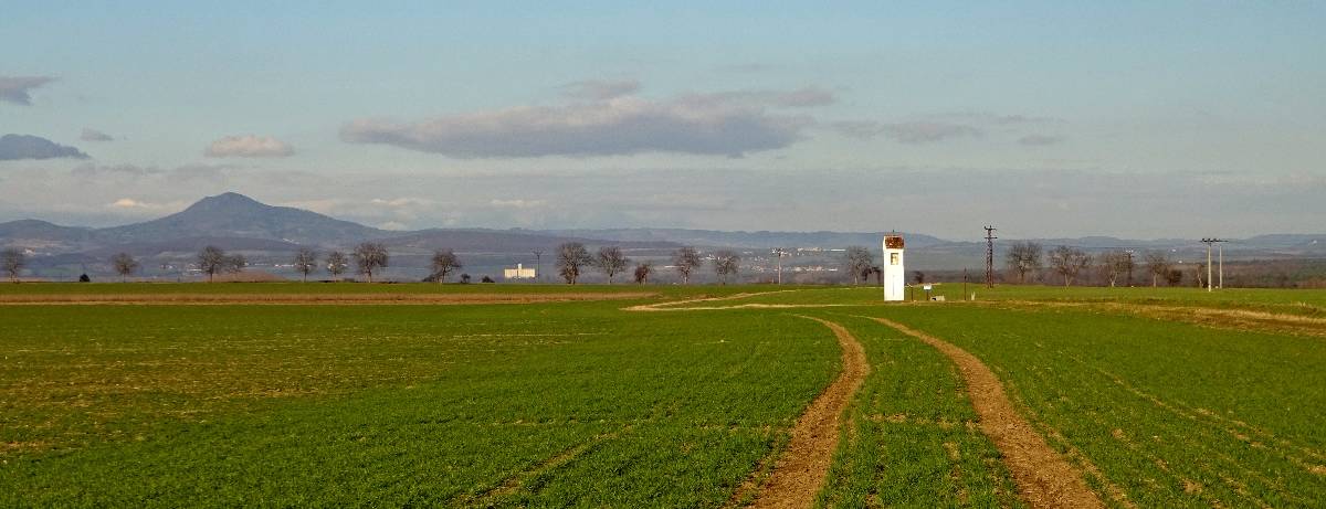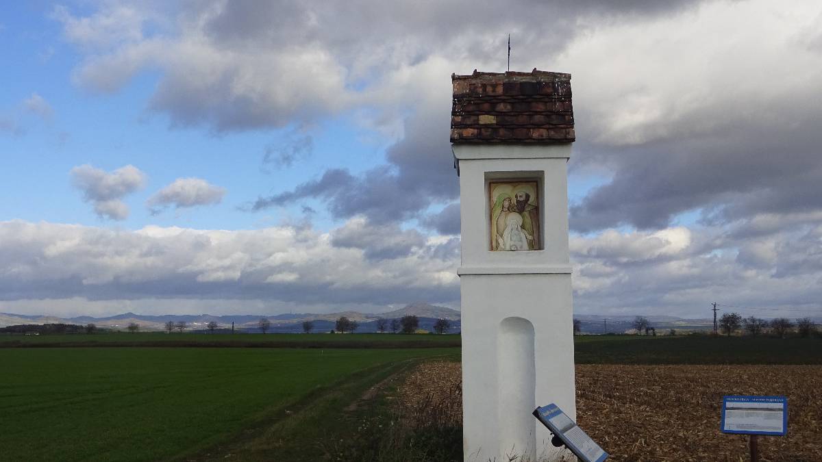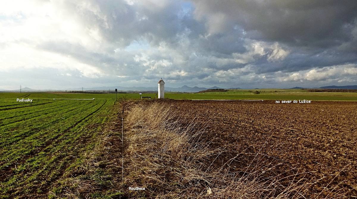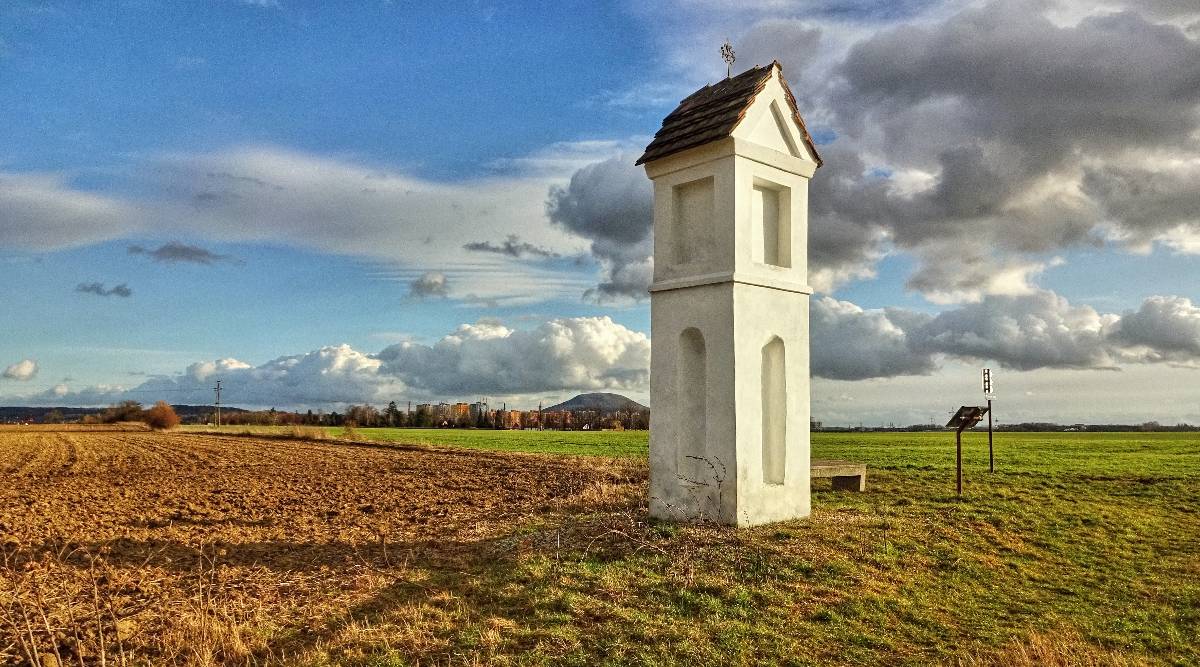 U kapličky je lavička a tabulky s popisky. Otvírá se tu totiž pohled na překrásné panorama Českého středohoří zleva od Hazmburku přes dominanty Lovoš, Milešovku a Kletečnou až po Radobýl, Dlouhý vrch a Sovici úplně vpravo. Skoro nikdo sem nechodí, jen sem tam potkám nějakého pejskaře. Dají se zahlédnout srny, zajíc, bažanti, vyplašila jsem koroptve. Přelétají dravci, nad hlavou mi zpívají skřivani. Navečer z roudnického letiště vylétají letadélka, zakrouží a vrací se zpátky.