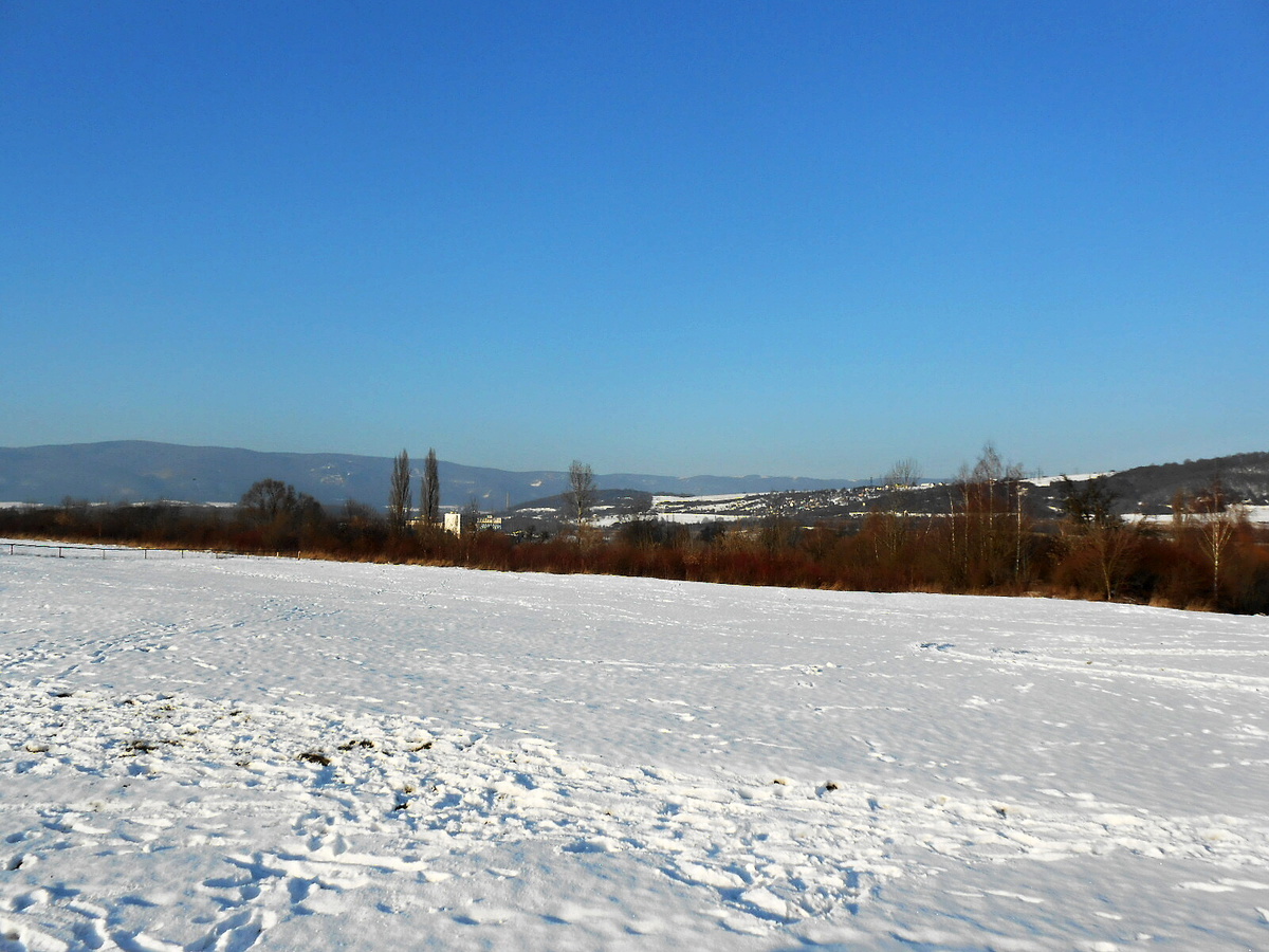 Tak jsme se i my, v Ústí nad Labem, konečně dočkali slunečného odpoledne. V týdnu jsme se s dcerou domlouvaly, že bychom o víkendu mohly jet na Miladu. Ona na běžky a já s foťákem. A protože dal pánbůh, vykouklo během dopoledne slunce, ale  okolí zůstalo trochu zamlžené. Když nám slehl oběd, teple jsme se nabalily a odjely jsme k již zmiňovanému jezeru.