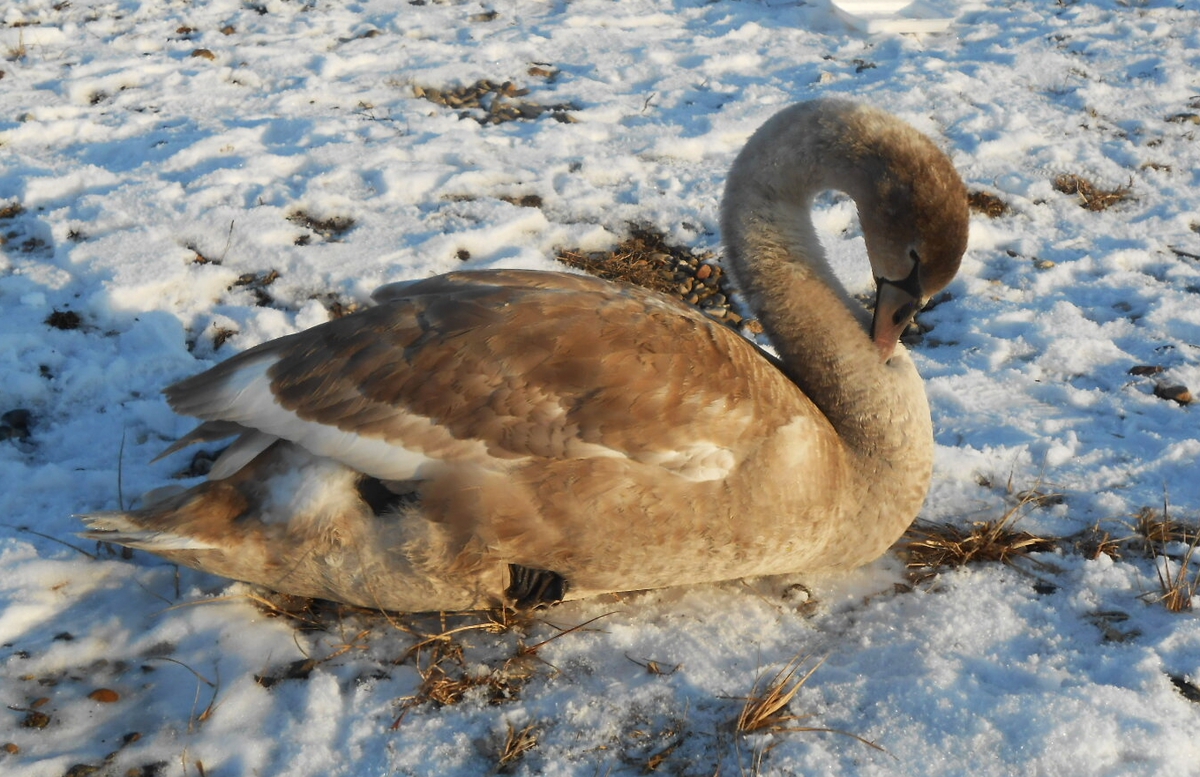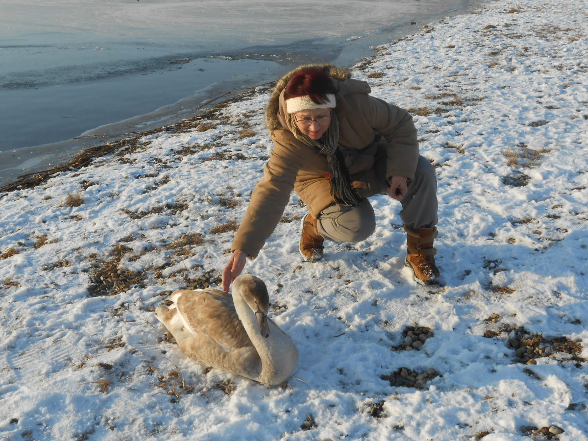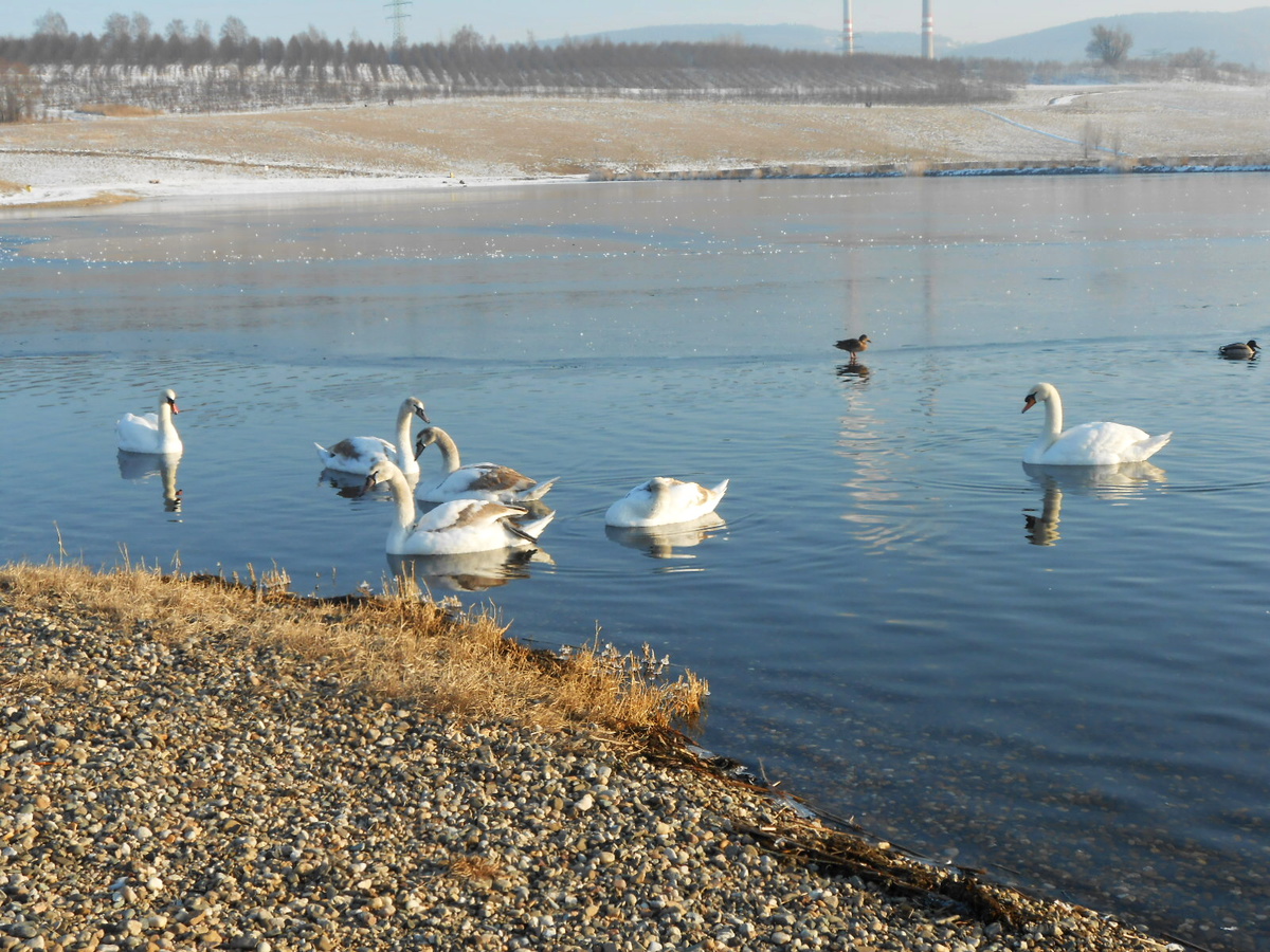 Když jsme dorazily na místo, byla jsem překvapená, kolik lidí mělo stejný nápad a vyrazilo ven, ovšem na běžkách tam byla jen dcera. Nazula lyže a vyrazila jedním směrem, já vybalila svůj foťáček a vyrazila směrem k vodě. Jezero bylo částečně zamrzlé, pro vodní ptactvo byly upraveny malé vodní plochy bez ledu. Když jsme na Miladě byli na podzim, tolik kačen tam rozhodně nebylo. Labutě se majestátně procházely kolem, kachny se máchaly ve vodě. Trochu mě vyděsil labuťák, který se asi nechtěl fotit, nebo se bál o své teritorium, protože mě docela rychle vyhnal od vody do patřičné vzdálenosti. A to mazal, prosím, po ledě.