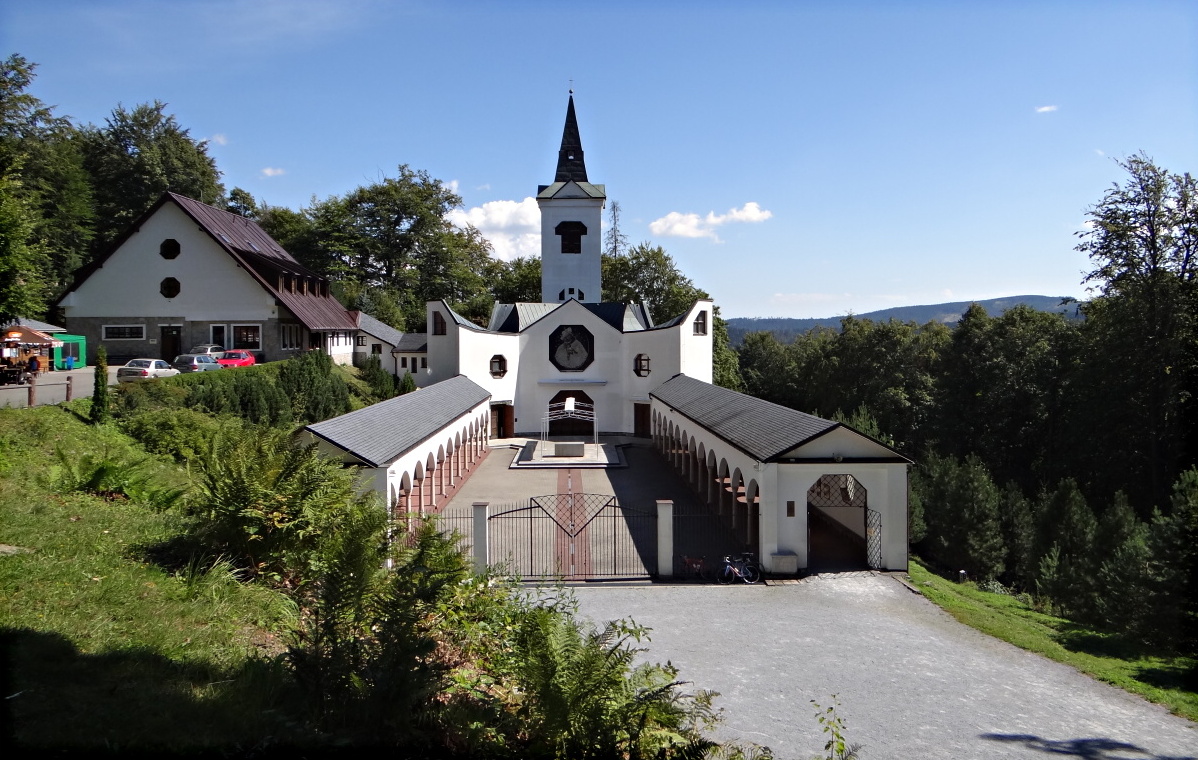Tento kostel, rozkládající se nad jedním moravským městem, měl pohnutý osud. Jeho vznik je spojen s příběhem těhotné ženy, která před švédskými vojsky utekla na horu Boží Dar a prosila o přímluvu Svatou Pannu, byla vyslyšena a porodila zdravého syna. Ten pak v poslední vůli přikázal, aby byl na místě jeho narození zavěšen svatý obraz. Během deseti let byla zde vybudována kaple. V 19. století byl místo kaple postaven kostel. Bohoslužby se zde konaly až do roku 1955, pak byl zcela zdevastován a nakonec byl vyhozen do vzduchu a srovnán se zemí. Znovu byl postaven až po Sametové revoluci. A to za dva roky a pět měsíců. Jednou v roce se zde koná slavná Pouť tří národů. U kostela je postavený také klášter - poutní dům. Ke kostelu se dostanete po asfaltové silnici autem a nebo lesem křížovou cestou.