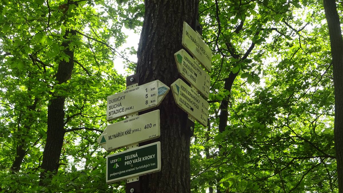 Po příjemné chvilce budeme pokračovat z Dubiček dále mezi zahrádkami, ovšem nezapomeneme přestoupit na zelenou! Ta nás povede většinou lesem k další vyhlídce, jíž je Mlynářův kříž. Je odtud výhled dolů do labského kaňonu, jímž se řeka ubírá k Ústí nad Labem.