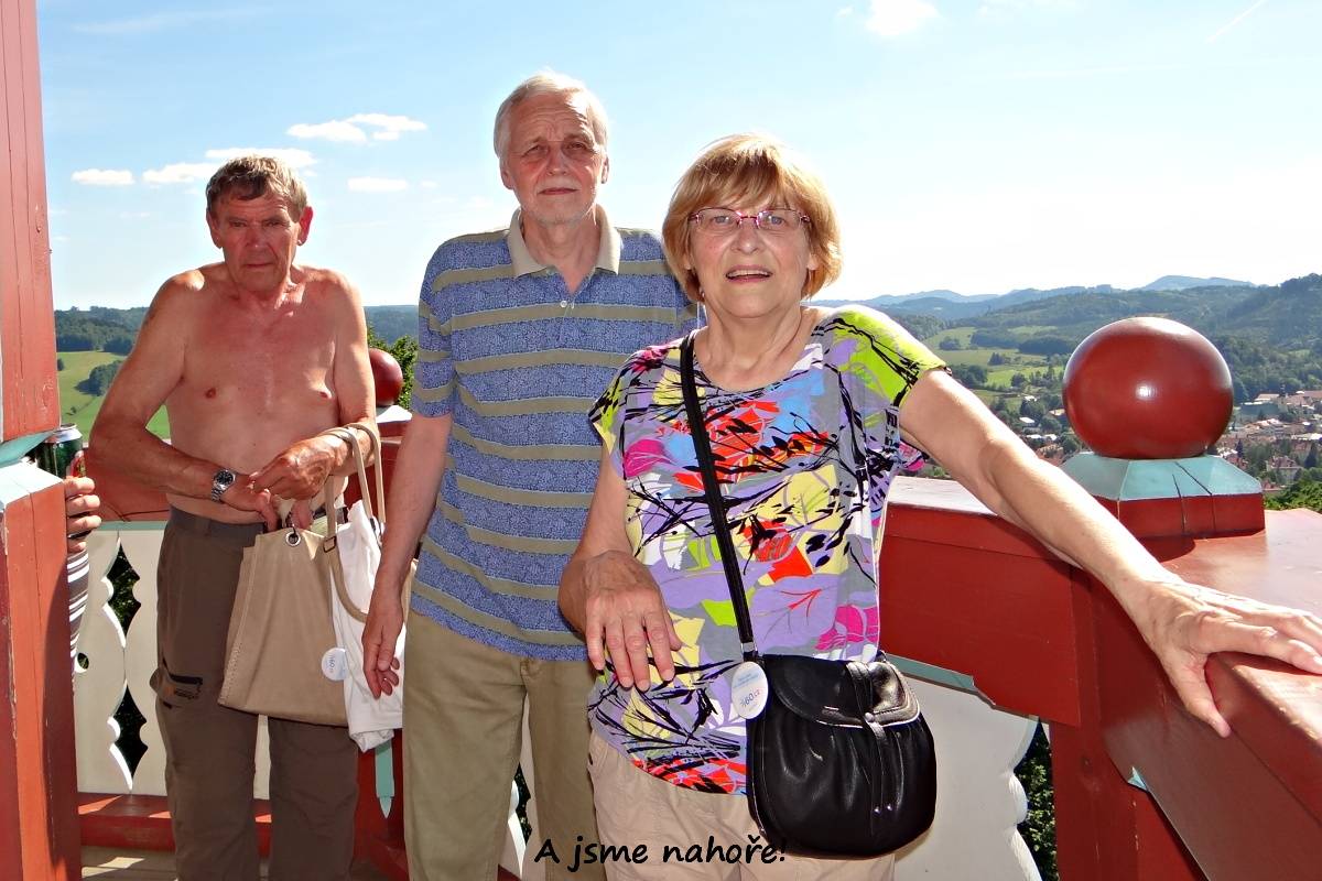 Úderem 15 hodiny se vydáváme na prohlídku města. Utvoří se dvě party. Jedna šplhá s Vláďou na Jurkovičovu rozhlednu a druhá obhlíží místní cukrárny a park, tu vede domorodkyně Anička.