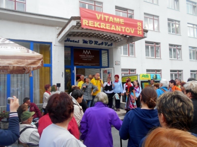 Tatranská Lomnica - 20. květen 2017 (sobota) a jsme zde před hotelem Morava. V parku všude kvetou rododendrony, kolem dokola letohrádky, penziony. Probíhá přivítání celého personálu a jdeme se ubytovat. Lidmila, Eva a já do třílůžkového pokoje s balkonem, kde se nám pohledem nabízí samá zeleň a v kopci v lese vidíme i Grandhotel Praha. Libuška s Majkou bydlí naproti nám. Jdeme si prohlédnout hotel, vestibul, společenské místnosti.