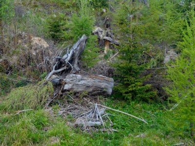 Je z Tatranské Lomnice a 2krát do týdne absolvuje tento výšlap. Loučíme se, Limi ho objala a asi tu energii převzala a povídá. Po cestě nepůjdeme, jdeme na sjezdovku a podél lanovky. Šlo se dobře, nízká tráva, sem tam kamení, žádná myš, žádný had, jenom jsem slyšela sýkorku a nějakého zpěvného ptáčka, nějaké káně. Také na nás vykukoval za stromem srnec. Všude jsou polomy z r. 2004, vydržely jenom modříny, mají hluboké kořeny. Les se znovu obnovuje nálety a dotovanou výsadbou.