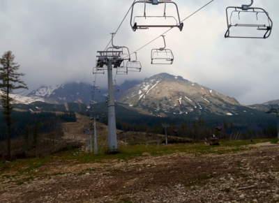 Už se blížíme k mezistanici lanovky Štart, kde se přesedá na Skalnaté pleso a potom visutou lanovkou na Lomnický štít. Usedáme na lavičky a rozhlížíme se po okolí. Výšlap nám trval dvě hodiny. Dál již nepůjdeme. Jsou zde připravené trojkolky nazpět. Limi říká, to by bylo, sjet až dolů. Ale to již necháme mladým a vracíme se zpět po svých. Najednou sviští jedna, druhá, třetí trojkolka, to je fofr.