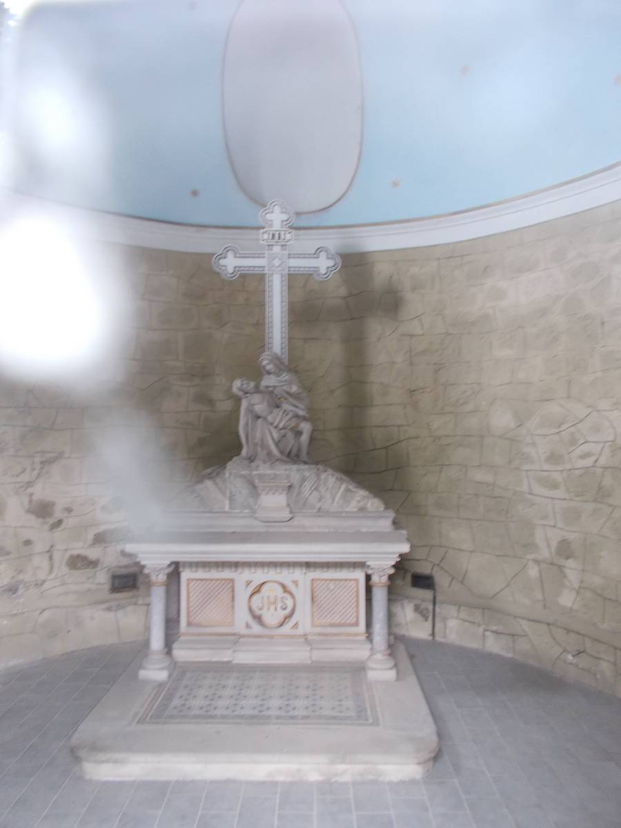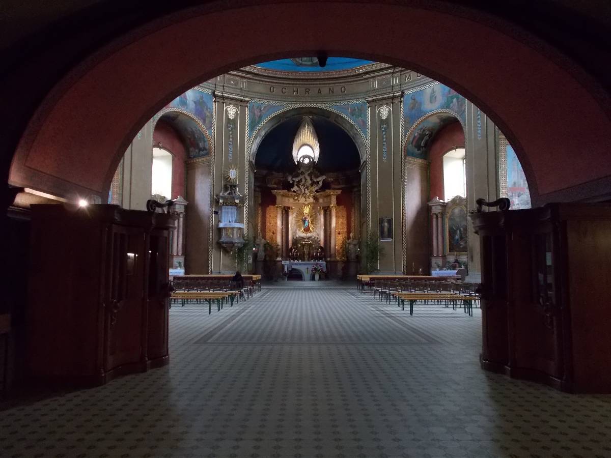 Stoupáme po úzké siničce až k parkovišti. Je pravé poledne. Už z dálky vidíme nádhernou kopuli chrámu. Pod chrámem v louce je mnoho poutních zastavení. Na obzoru se točí větrná elekrárna a u ní stojí rozhledna. Kam dřív? Ve věži chrámu začalo odbíjet poledne. Pomalým krokem se blížíme k nádhernému chrámu. Potkáváme řádové sestry, které vychází z řeholního domu. Smíšený pocit na tomto svatém místě mne neminul.