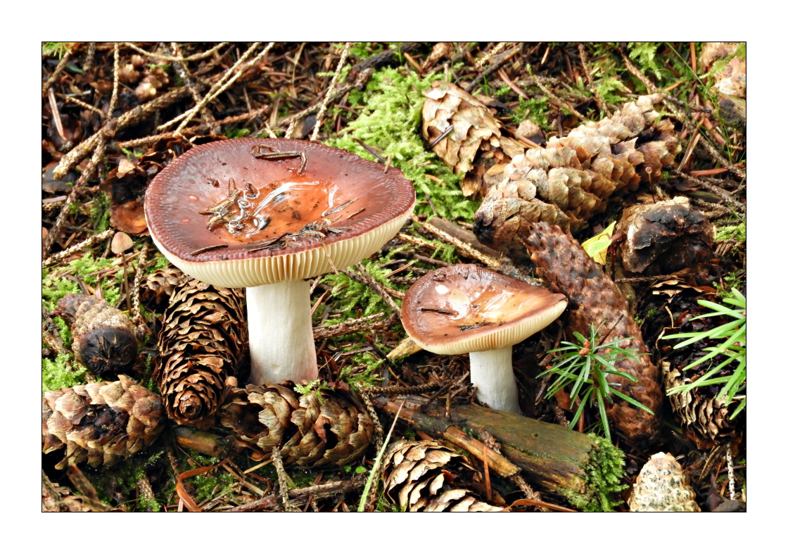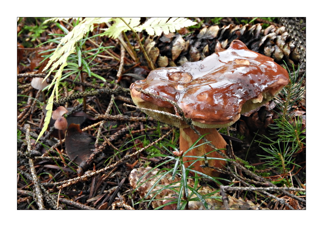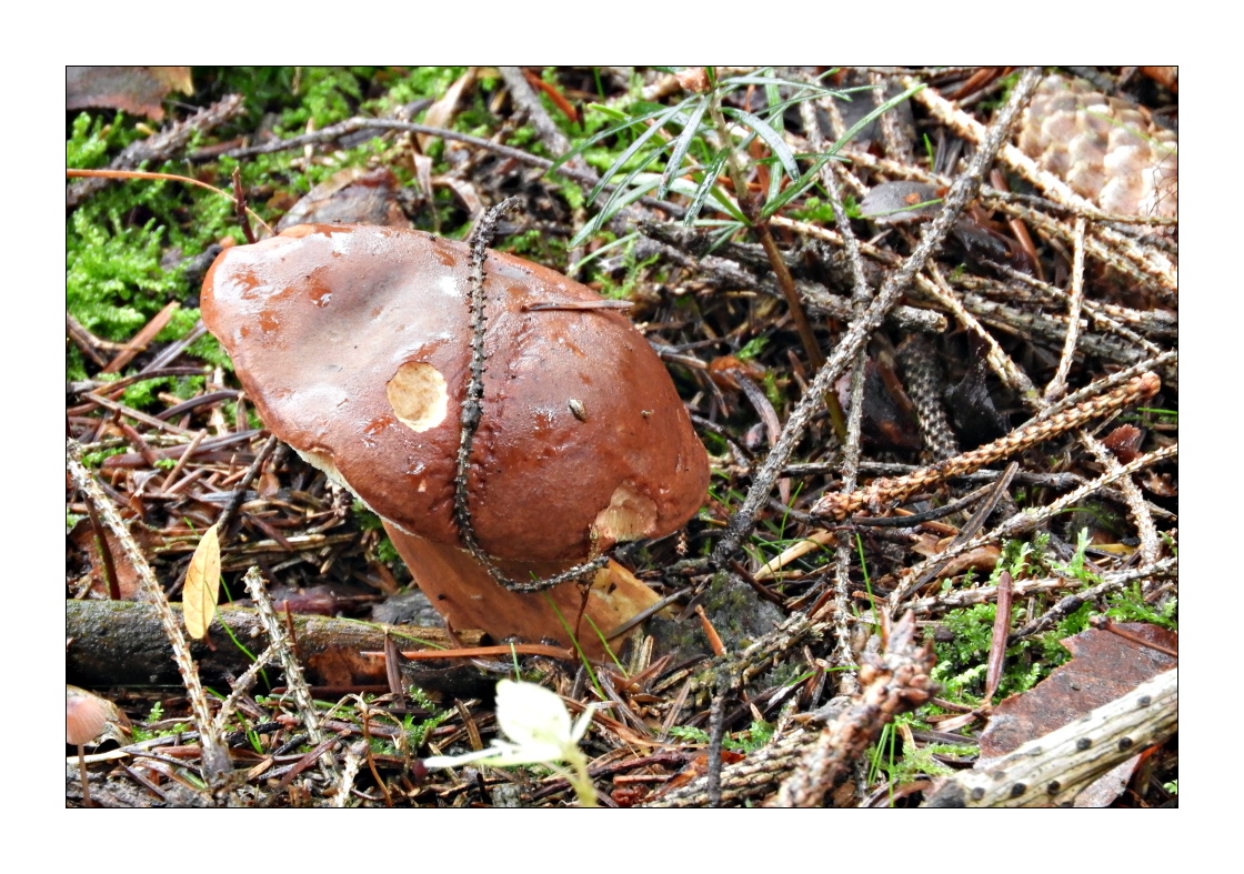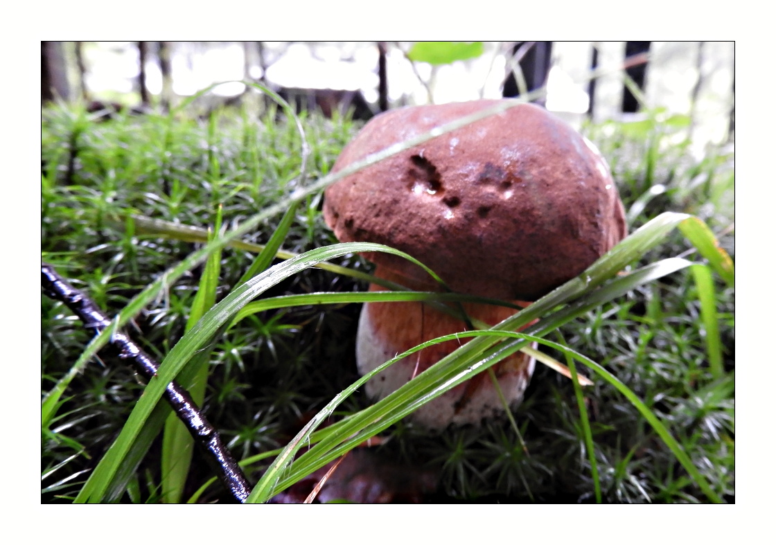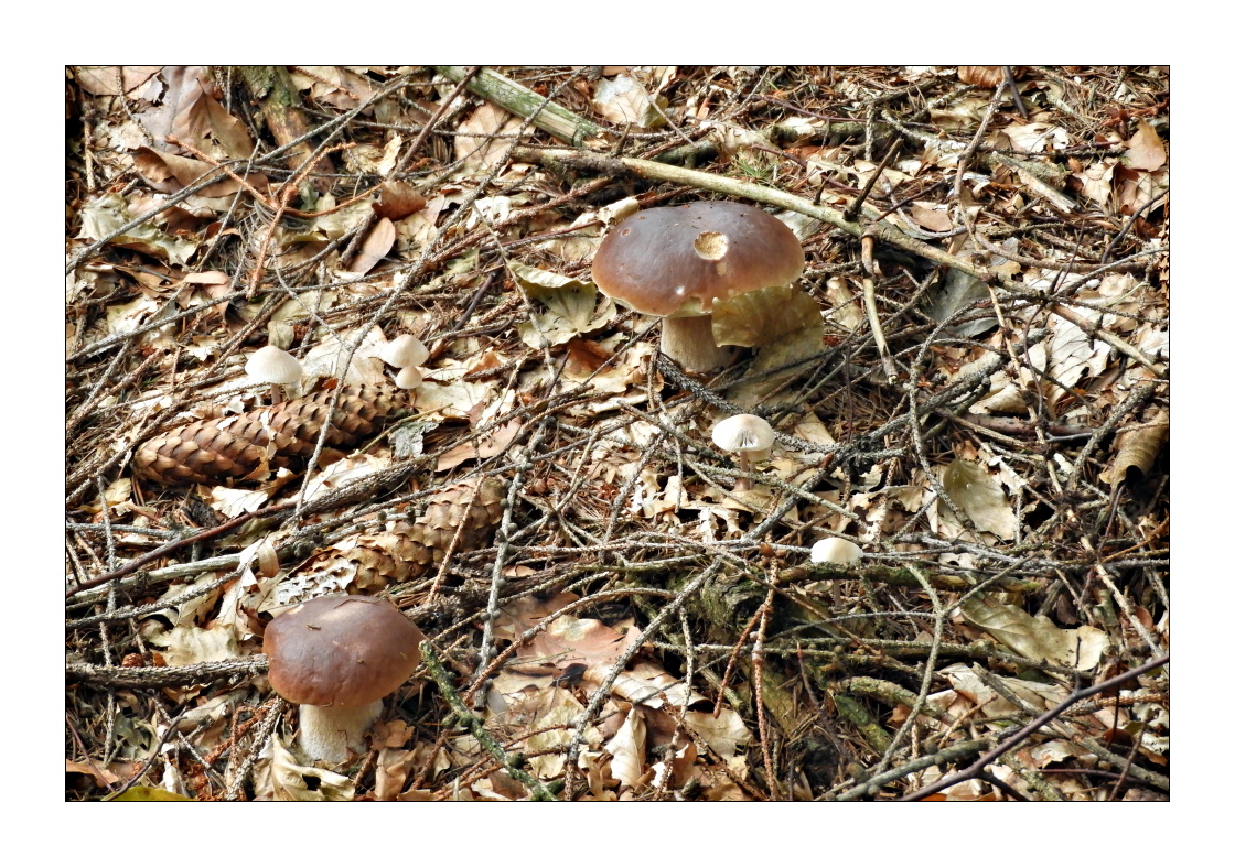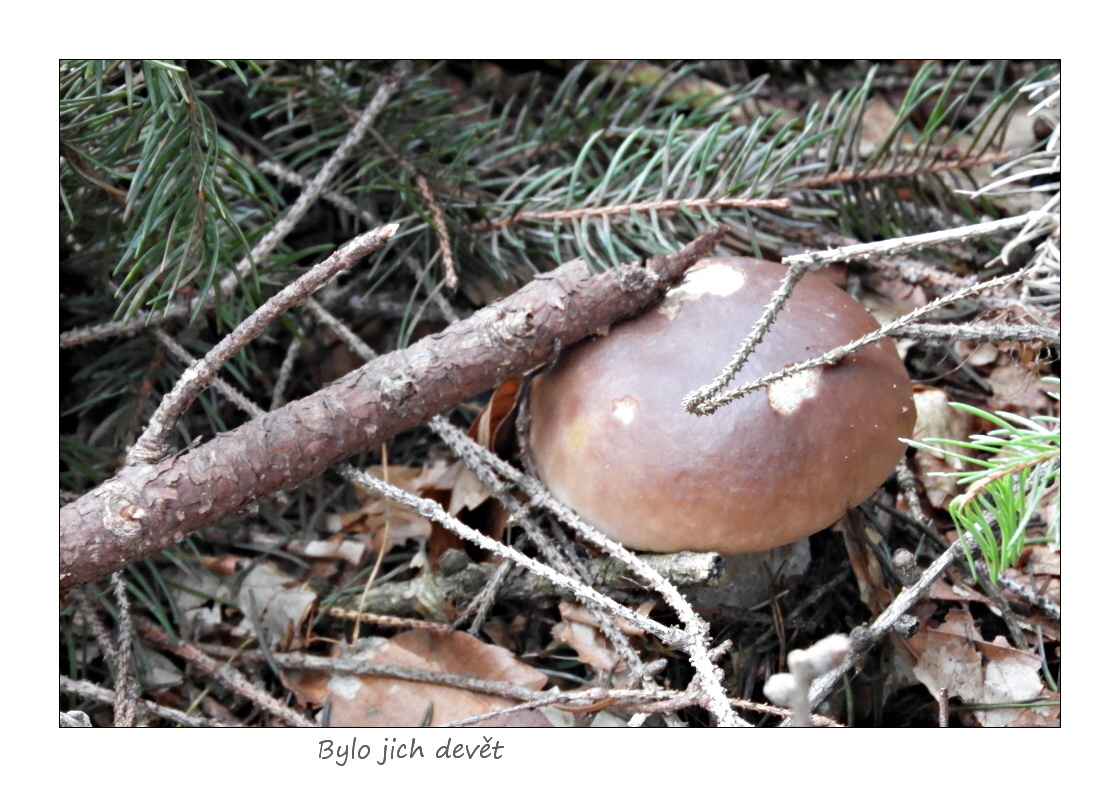 Cestou mlázím posbírám všechny pavučiny, co jich tam ti malí prevítí navěšeli od stromu ke keři a zase zpátky. Nakukuji pod smrčky i borovičky, ha babka. Schovala se přede mnou pod lístek z dubu, ale nic jí nepomohlo. Hlásím manželovi, že už ji mám v košíku. Za chvíli tam přibyly i dvě, poněkud už jeté, bedličky.