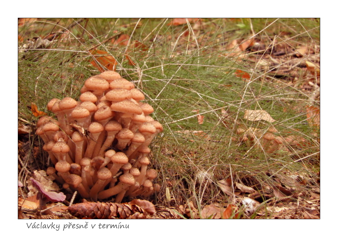 PS: Ale přiznám se, že kromě václavek, které fakt už začaly růst přesně v termínu, jsem našla i devět krásných zdravých praváčků plus nějaké ty babky a pár suchohřibů. Možná si řeknete: žádná sláva, ale alespoň zbylo i pro ty, co své houbařské štěstí mají pěkně na řetízku.