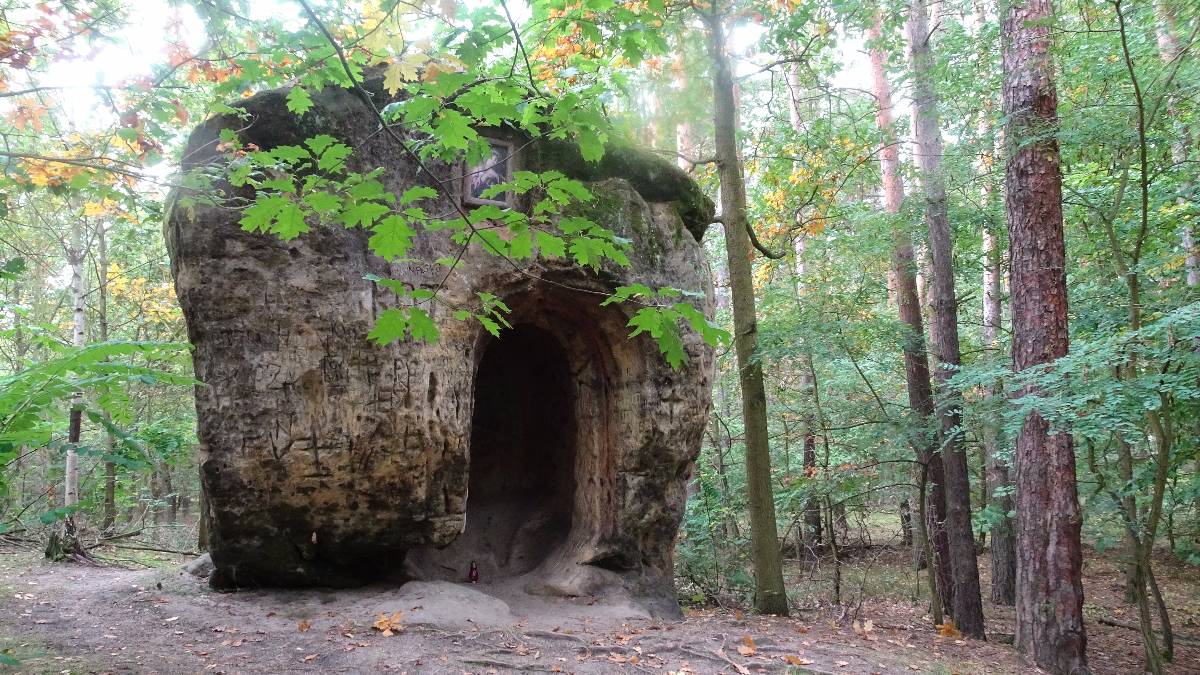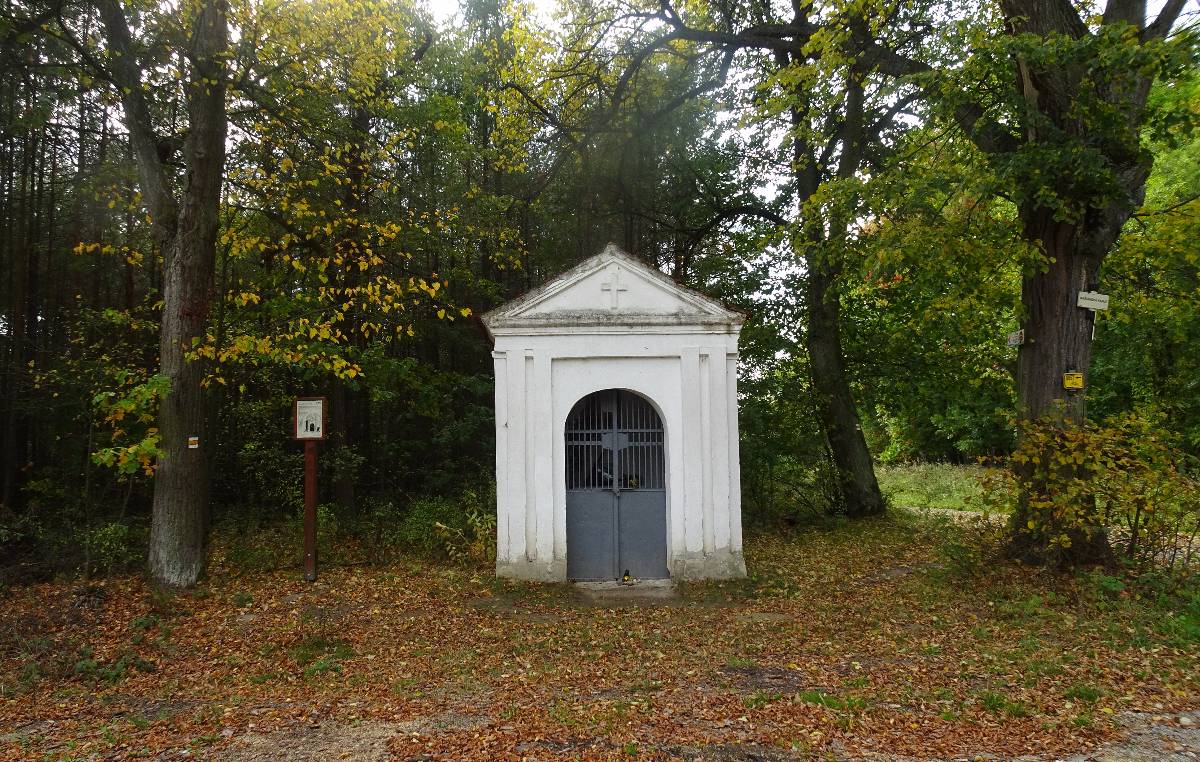 Ta stojí od konce 17. století na místě bývalých božích muk. Podle lesní cesty vidím spoustu klouzků. Svítí do dálky a kosou by se daly sklízet. Já tu však nejsem kvůli houbám, a tak se zastavím až u Hraběcí kaple. Stojí tu na paměť jakéhosi pána, který se choval nedobře ke svým poddaným a ti si jednou na něho v lese počkali. Červené a puntíkované muchomůrky všech velikostí mě vábí, abych si je vyfotila, tak některým z nich vyhovím. Uhýbám pánovi na kole, který v ruce drží koš plný hub. Zastavuje a já se ptám: můžu si je pohladit? Pokochám se sametovými hříbky a bedlami a ubírám se k Mordlochu. Mordloch je jeskyně, kde se prý zdržovali loupežníci. Jestli je to pravda nevím, ale určitě vím, že v ní jsou pryčny a před jeskyní ohniště, kde si můžete opéct buřtíky. Je tu také zajímavá skála s příznačným názvem Sedm chlebů.