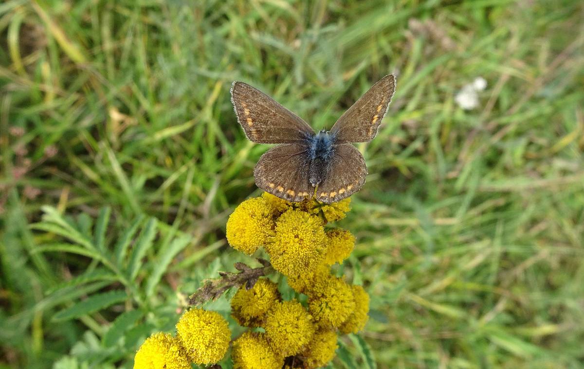 Za slunečného pozdně zářijového odpoledne jsem se na vycházku vydala i já. Za Stračím těsně u lesa září žluté pole, jakoby bylo jaro. Jen to tu bzučí a pasou se i motýli, já však mám před sebou celou cestu, a proto se nezdržuji. Toto předsevzetí mi však dlouho nevydrží a musím si vyfotografovat barevnou podzimní krajinu i poletující motýlky u cesty. Ta mě po chvilce dovede k lesu a prvnímu zastavení - Mariánské kapličce.