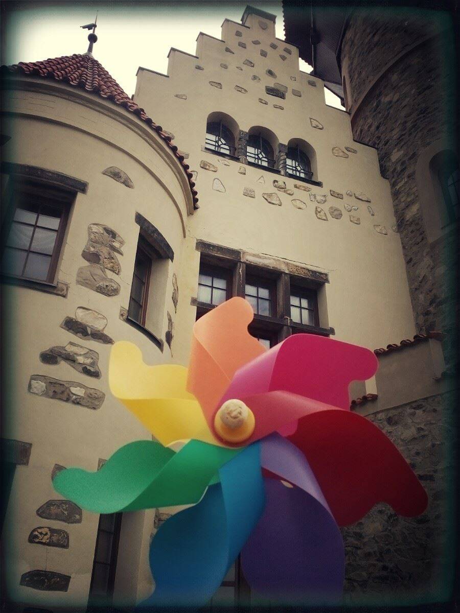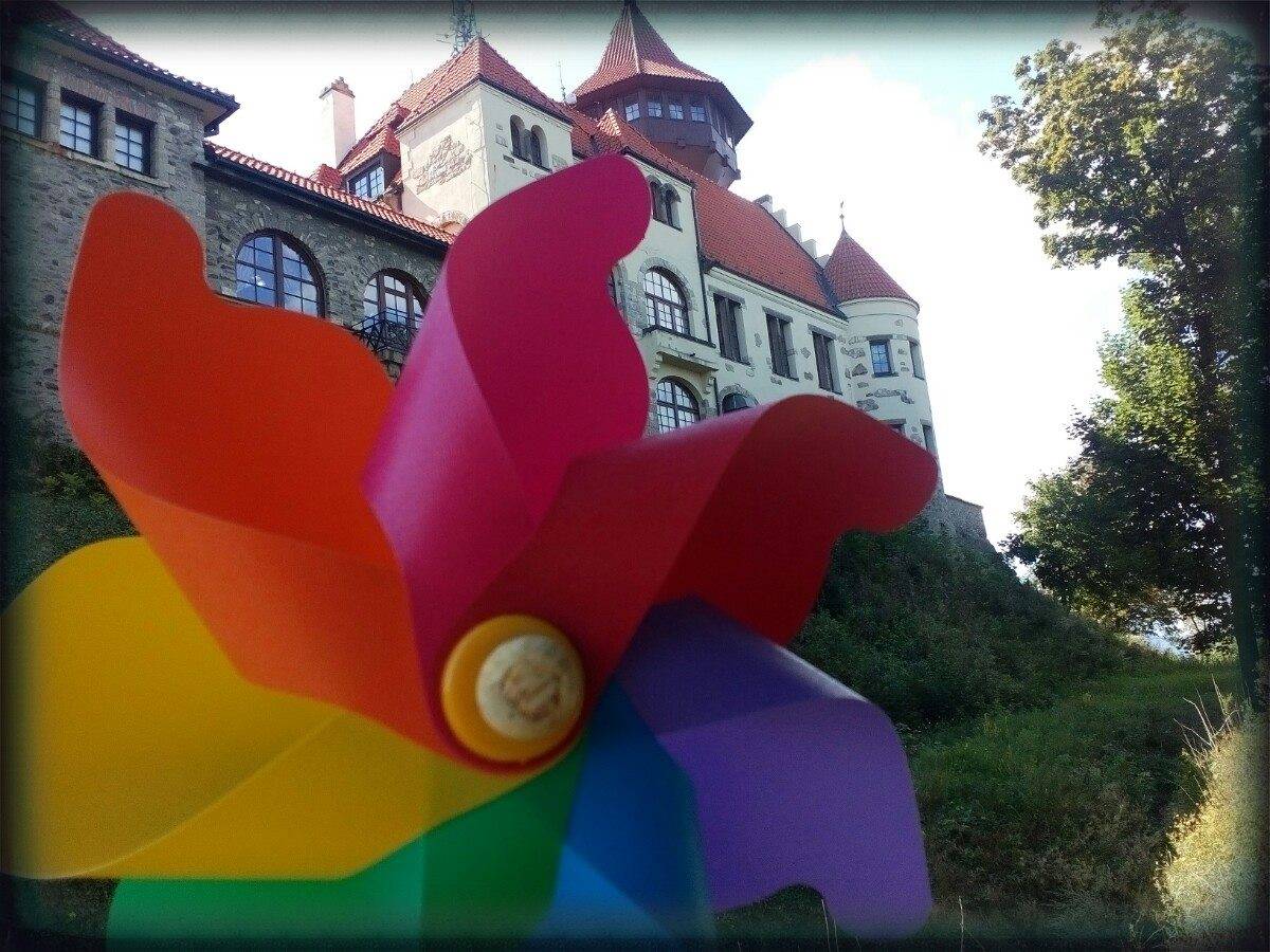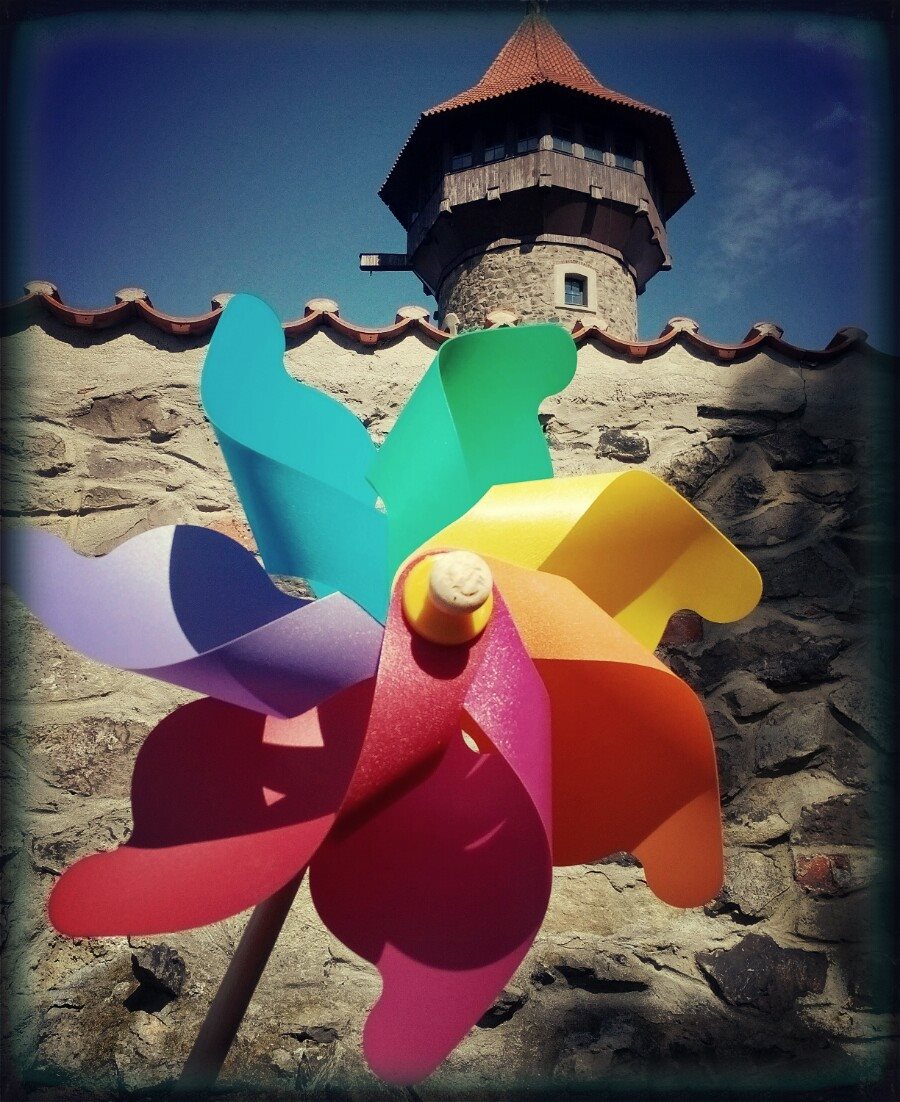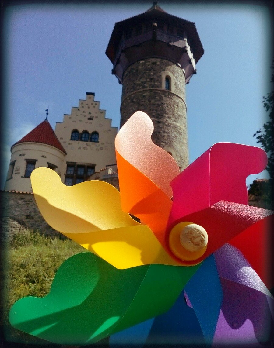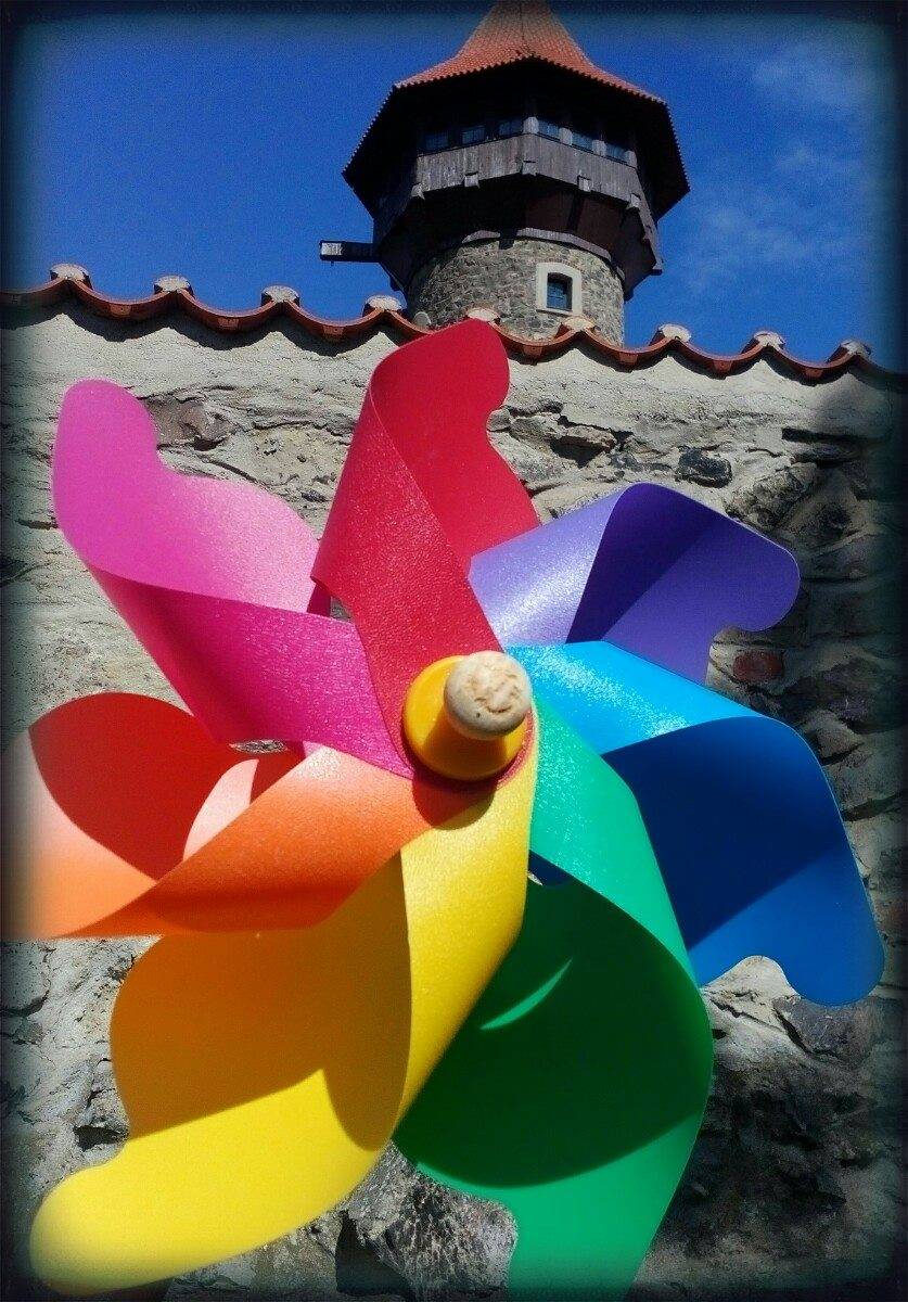 A i tento výlet jsme si vybarvily s větrníkem do barev duhy. Sice tam zrovna byla svatba, takže pro snímky jsem byla dost omezena prostorem, ale i tak jsme si to užily.