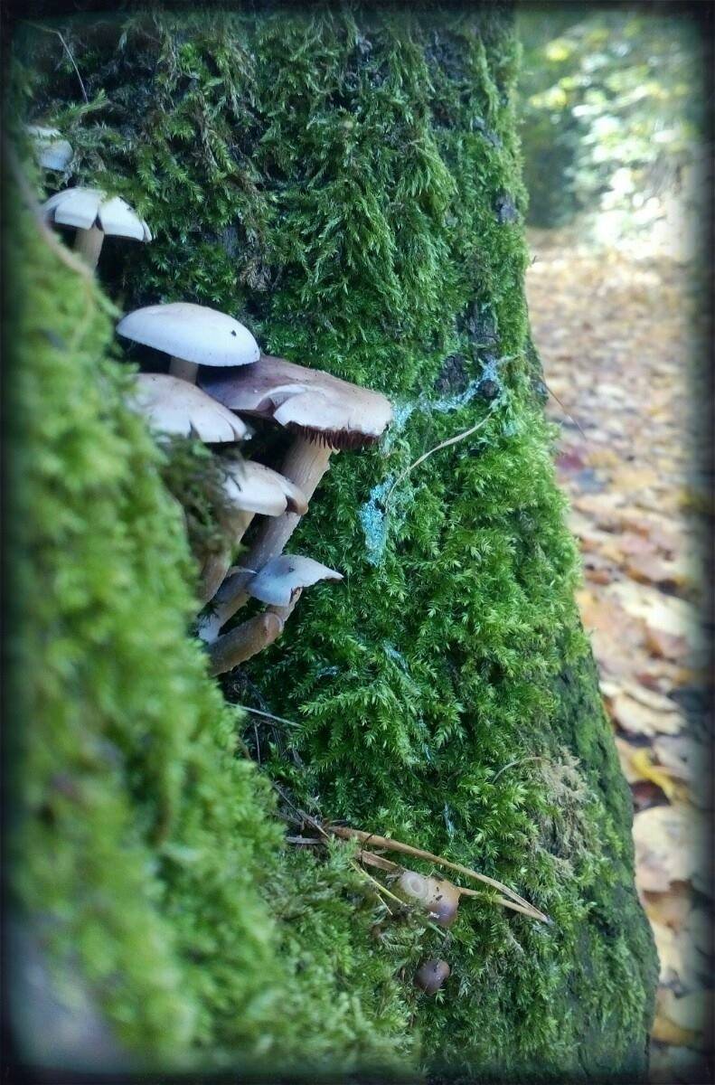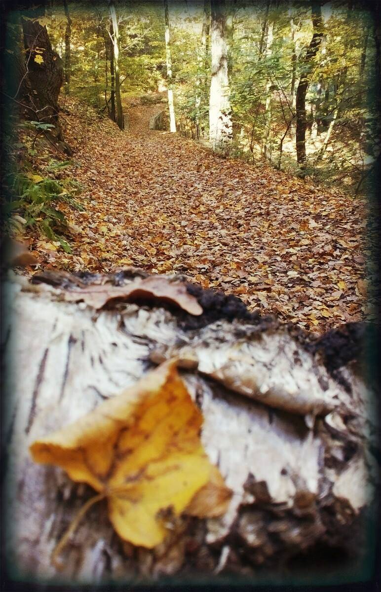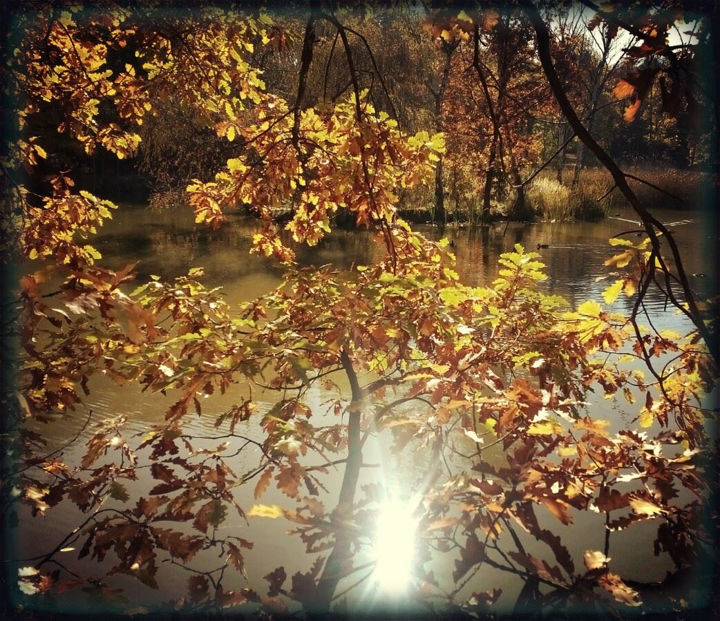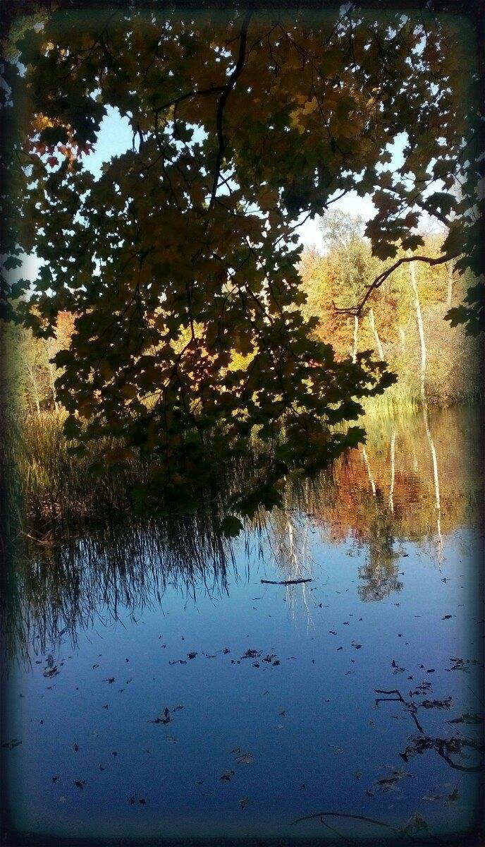 Cestou jsme potkávaly houbičky, plody lesa ukryté v mechu, strom s otvorem asi pro bytosti lesa, hladina rybníku byla pozlacena od zbarveného listí.