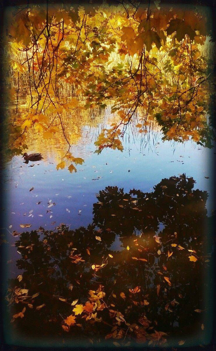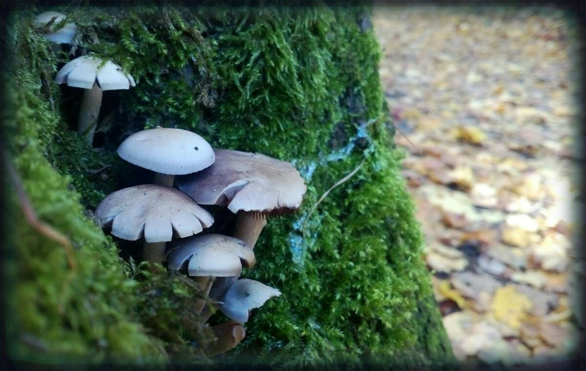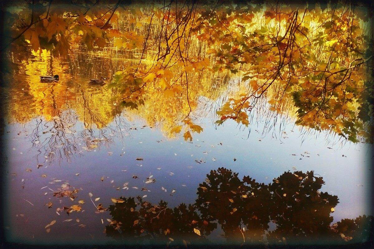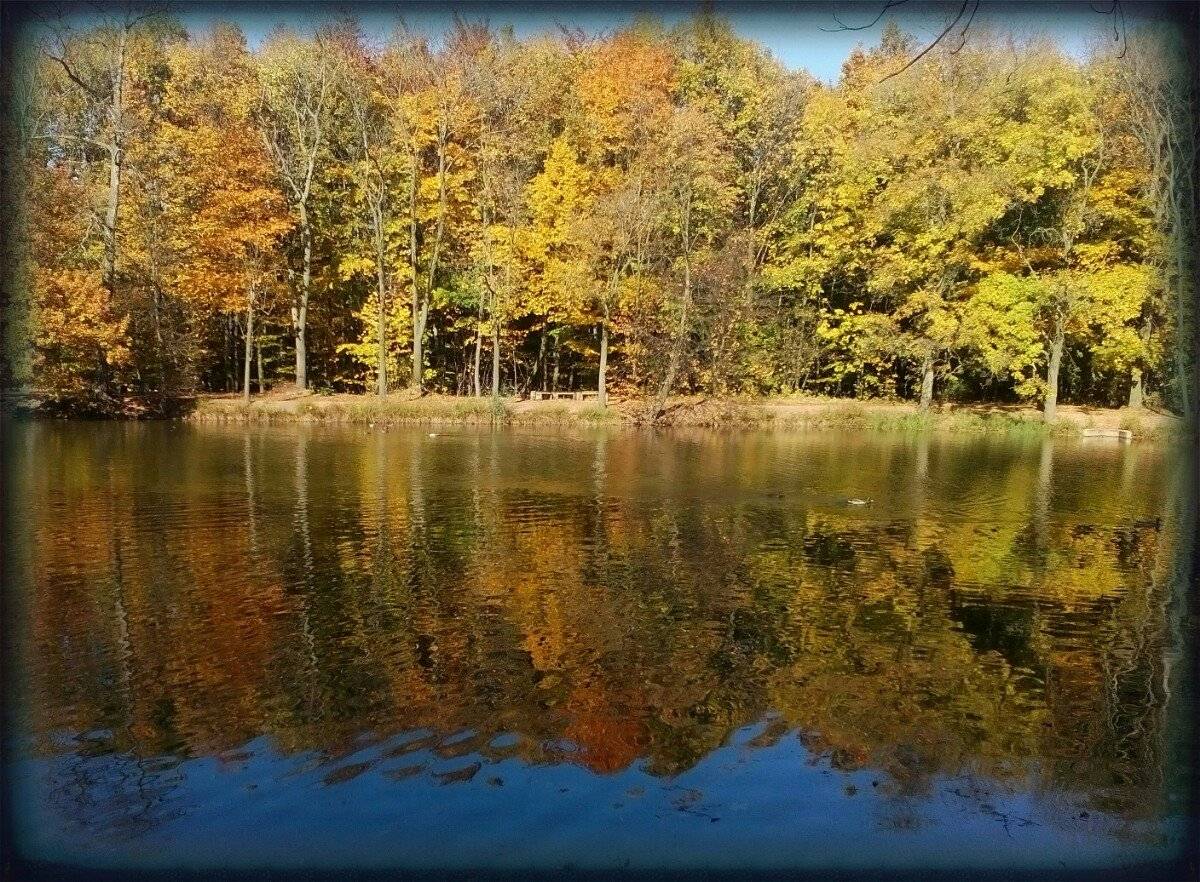 Cestou jsme potkávaly houbičky, plody lesa ukryté v mechu, strom s otvorem asi pro bytosti lesa, hladina rybníku byla pozlacena od zbarveného listí.