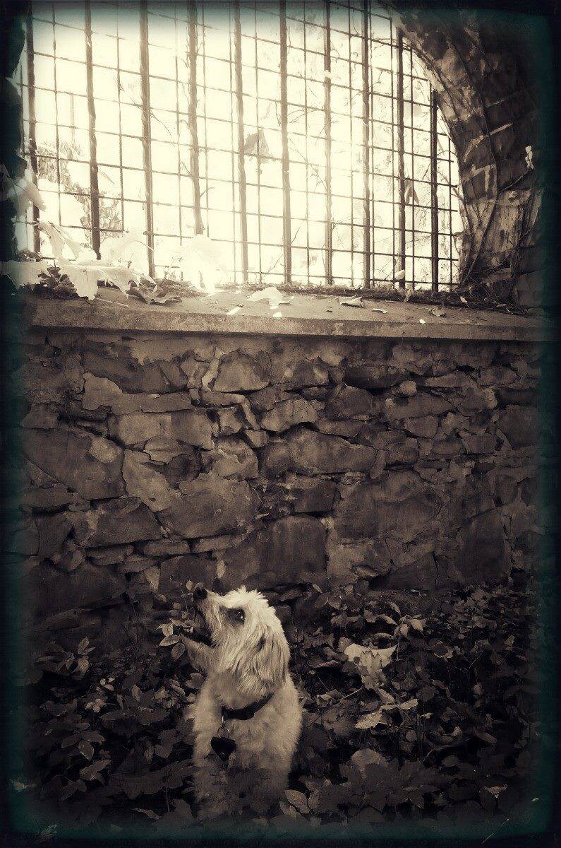 A když jsem přišla blíže, byly jsme s Megí jak v říši divů. Před námi okno s výhledem do ráje. I Megí se nestačila divit, kdeže to je, a dívala se vzhůru. A to byl ten okamžik, kdy jsem zmačkla spoušť fotoaparátu a vzniknul tak nádherný snímek okamžiku mé fenky. I Luky tento snímek okomentoval na Instagramu, že mu tento snímek připomíná Saudka, tedy ten v podobě nebarevné. Velká to poklona od něj, ač panu Saudkovi jsou modelem spíše ženy plných tvarů...