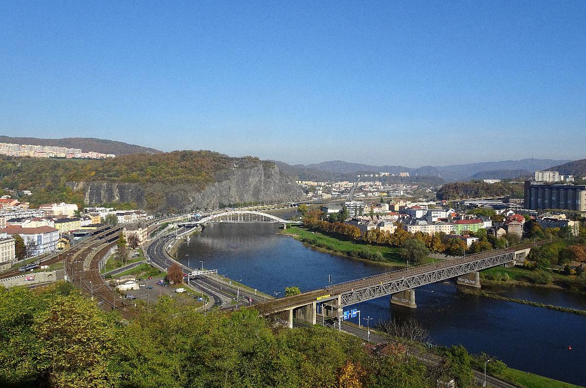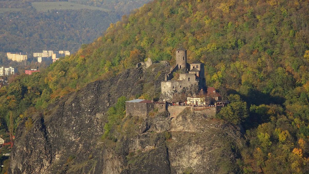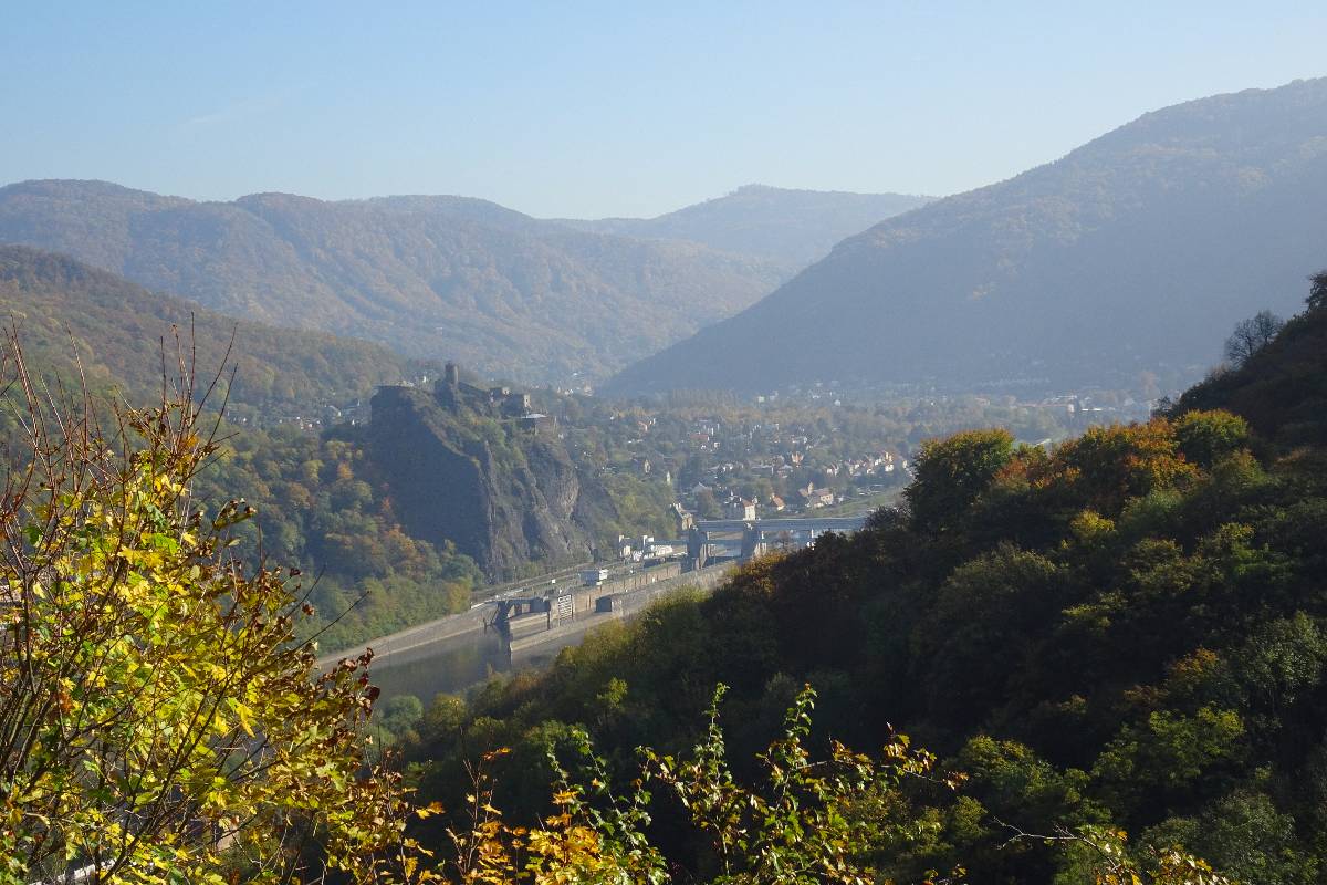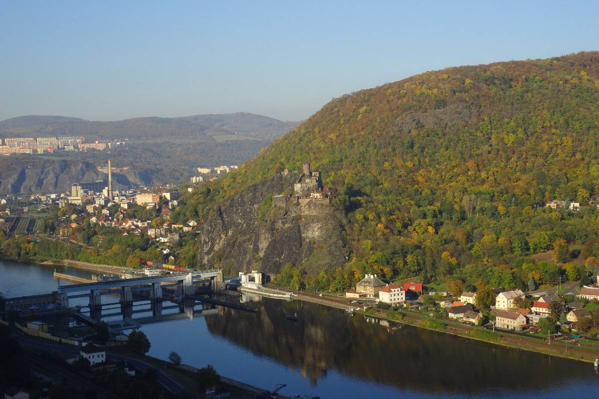 Na cestu se vydáme z Ústí nad Labem. Které české město se může pochlubit lanovkou? Ano, je to právě Ústí nad Labem. Pro zpestření výletu tedy použijeme pro první část cesty lanovku a za pouhých 18,- Kč se  necháme vyvézt k výletnímu zámečku Větruše. Pobavíme se v zrcadlovém bludišti a vydáme se na cestu. K Národní přírodní památce Vaňovský vodopád nás povede zelená turistická značka po úbočí strmých svahů nad Labem. Než se však k vodopádu dostaneme, čeká nás několik zastavení s parádními výhledy. Hned na prvním zastavení na Humboldtově vyhlídce poprvé spatříme Labe a nad ním na poměrně vzdálené strmé skále hrad Střekov. Určitě budete toužit - tak jako já -, aby se vám poštěstilo hrad vidět z větší blízkosti. Cesta nás povede dál většinou listnatým lesem. Protože stoupání jsme si vybrali hned na začátku trasy, ubíráme se nyní dál příjemným terénem bez velkého převýšení a netrpělivě mezi barevnými listy na stromech vyhlížíme hrad. Když se konečně dočkáme, je nám tentokrát už mnohem blíž. S překvapením zjistíme, že je pod námi a máme ho spolu se střekovskými zdymadly jako na dlani. Jaksi michochodem a bez potíží jsme se ocitli výše než je ta impozantní skála, která se zdola zdá tak vysoká. A to nás čeká ještě další vyhlídka, ze které hrad spatříme přímo naproti nám. Řekla bych, že právě zde se sluší usednout na lavičku, vytáhnout svačinu a beze spěchu se oddávat výhledu, kterého se těžko nabažíte. Čeká nás ještě chvíle šlapání a už se přibližujeme k vodopádu.