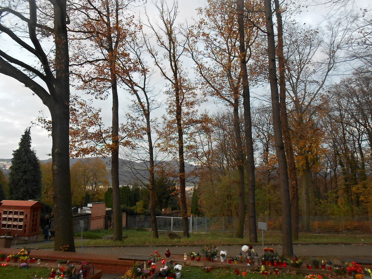 No a fotky ze hřbitova jsem k tomu dala proto, že se mi moc líbily podzimní barvy, které tam byly při západu slunce. Byli jsme tam v pátek v podvečer. Je to asi hlavní hřbitov v Ústí a je na Střekově. Jednou jsme měli čas a prošli jsme se tam, je opravdu moc hezký. Ne, že bych se tam chtěla brzy ocitnout.
