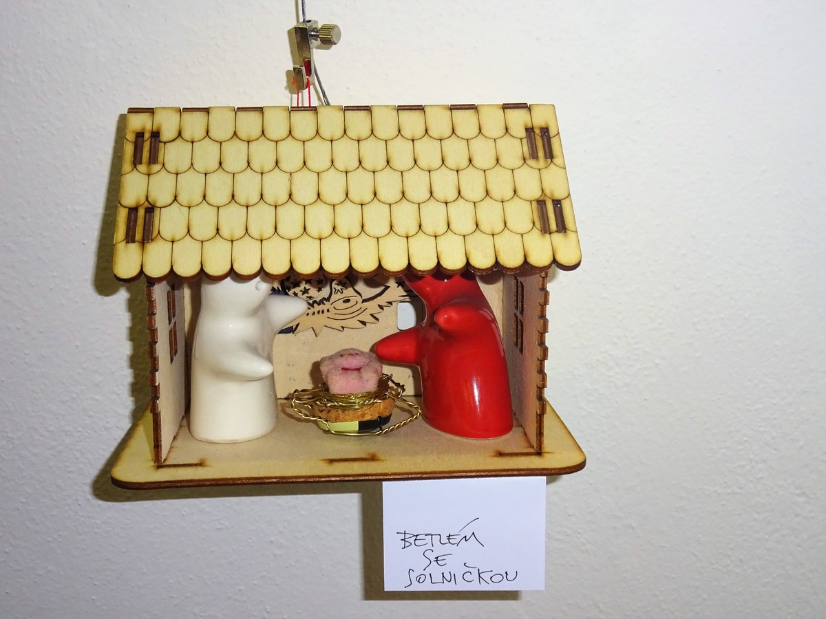 Betlémy tradiční, tedy dřevěné, porcelánové a papírové, se mi velmi líbily; půvabné jsou i betlémy z netradičních materiálů – skleněný, cínový a háčkovaný. S těmi ostatními jsem ovšem měla trochu problém - třeba Ježíšek v podobě červené diody, betlém z kovových hejblátek či krtečkový na mne byly trochu moc. Podívejte se sami – a budete-li chtít, napište mi svůj názor. Omlouvám se za kvalitu fotek způsobenou nevhodným osvětlením prostoru.