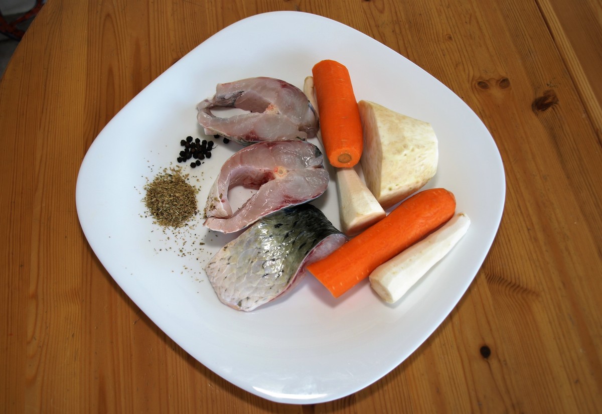 Hlava z kapra, odřezky rybího masa, rybí vnitřnosti, kořenová zelenina – část dáme vařit do polévky, část nastrouháme nahrubo, starší rohlíky (veka, housky), máslo či jiný vhodný tuk, celý pepř a nové koření, sůl. Pokud si svíčkovou z kapra na štědrovečerní tabuli chceme doplnit i rybí polévkou, uvaříme si vývar z hlavy a odřezků, které jsme nevyužili pro hlavní chod, a kořenové zeleniny. Raději použijeme čerstvou, mražená již nemá takové aroma. Osolíme, přidáme podle chuti pár kuliček celého pepře a nového koření. Zvlášť si uvaříme v malém množství osolené vody rybí vnitřnosti – jikry, mlíčí. Směs nastrouhané kořenové zeleniny lehce osmažíme na másle či na jiném tuku, zalijeme přecezeným vývarem z hlavy a doplníme o uvařené vnitřnosti. Můžeme zahustit jíškou. Na talíři podáváme s kostičkami osmažené housky nebo veky.
