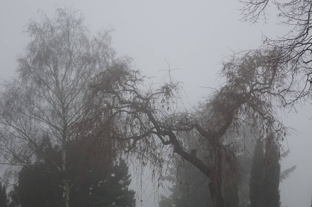 Když padne mlha na město a zahalí jej do mléčného hávu  (Mlhavá féerie, dil 1, roudnická), dá se předpokládat, že nebude respektovat jeho hranice a padne i na celé okolí. Je to tak či ne? To mě zkrátka zajímá, a tak to musím zjistit. A jak jinak než obout boty, obléknout bundu, nasadit čepici a hurá ven. Kam se vydat? Nemám moc času, a tak cestou nejmenšího odporu, resp. tedy cestou nejkratší, zamířím za město hned v místech, kde bydlím. Vezmu přitom rovnou i návštěvu hřbitova. Tam zažívám těžko popsatelnou mysteriozní atmosféru a fascinovaně hledím na stromy v mlžném oparu nad náhrobky, vystupujícími z mlhy. Věřte, že v tu chvíli by mohly posloužit filmařům při natáčení hororových scén. Procházím uličkami, nikde ani živáčka a náhle se mi zrak stočí k zemi. Z mechu, obrůstajícího starou hrobku, vystupují drobná květenství, a tak před nimi pokorně klekám a pokouším se jejich něžnou lednovou krásu zachytit.