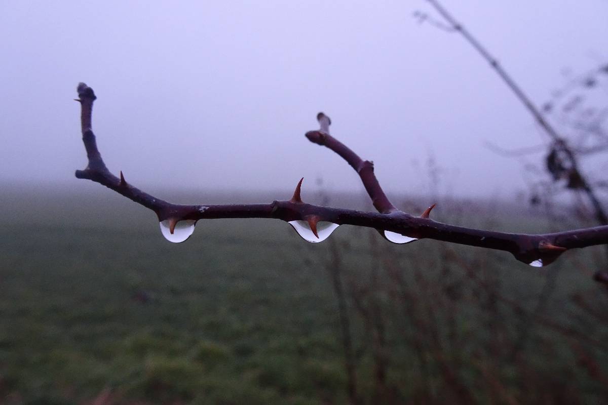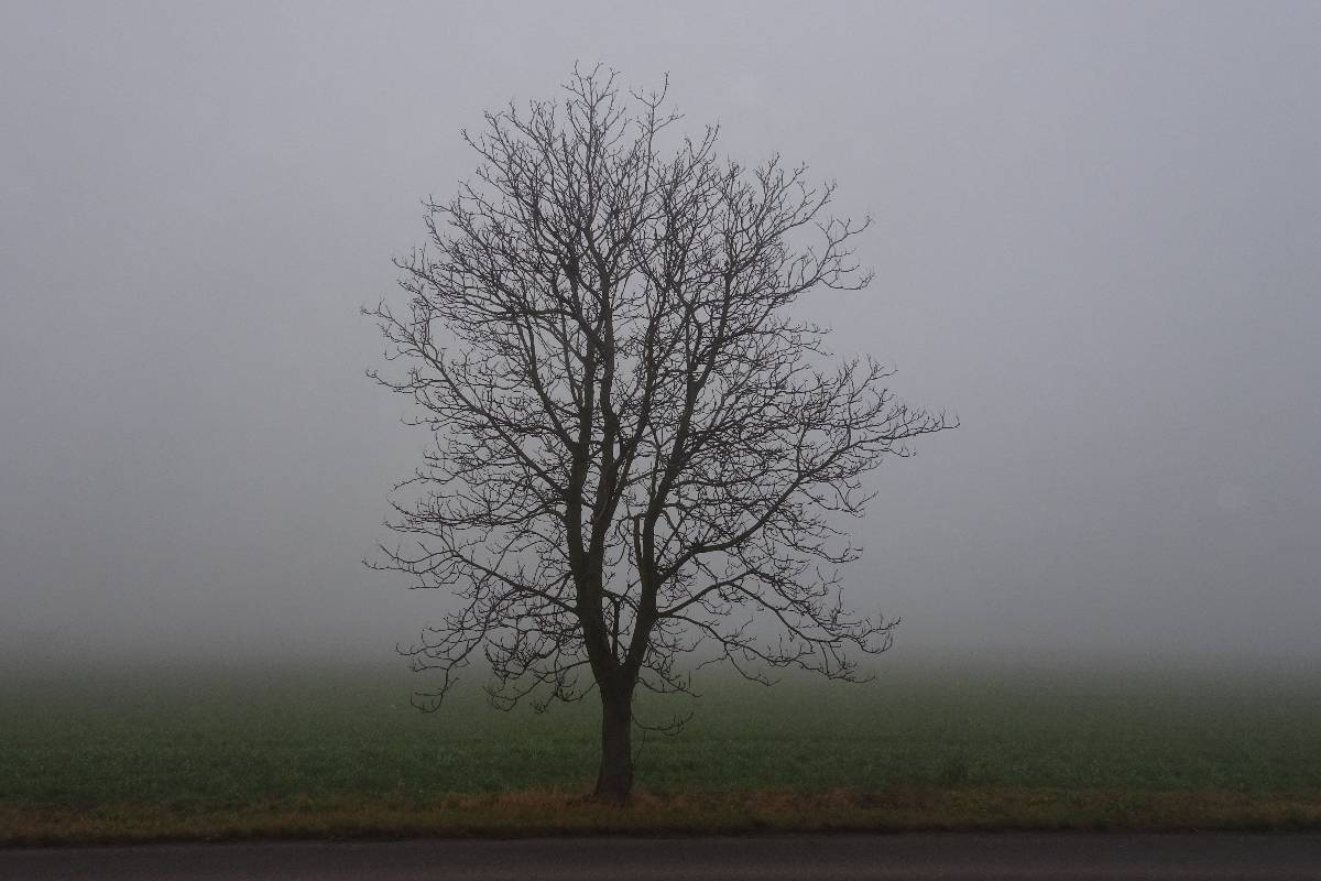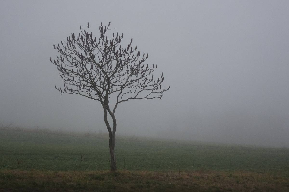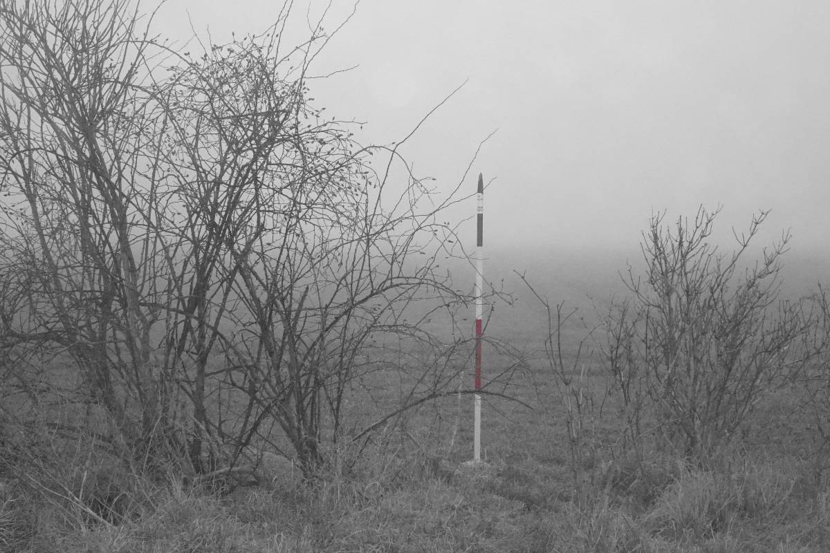 Pro tuto chvíli jsem ale nebojsa a směle to NIC prorážím. Cestu mám pod nohama a sem tam se přede mnou vynoří osamělý keřík na mezi. Při jejich zvěčňování zjišťuji, že mlha prostoupila i můj foťák. Když už si začínám myslet, že pod kapličkou je propadlo a štíhlá stavbička se tam pro dnešek schovala, najednou bíle prosvítí mlhu a kyne mi na pozdrav. Však už jsme se nějaký čas nesetkaly. Tak rychle pár snímků a honem domů. Bílá tma se totiž nebezpečně začíná kamarádit s tou černou.