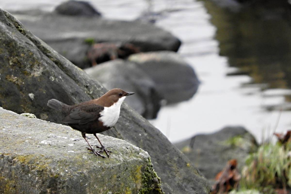 Dalším ptákem, kterého potkáváme při toulkách kolem řek, je skorec vodní. Malý pták, který svou přítomností určuje čistotu vodního toku, je velký asi jako kos. Svým neustálým pohupováním připomíná tanečníka. Ze svých pozorovatelen na kameni nebo převislé větvi se bleskurychle dokáže potopit pod hladinu a vynořit se o hodný kus dál.