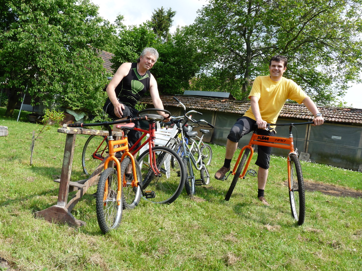 „Právě toto kulaté výročí nás přimělo k tomu, že jsme přes zimu vyrobili ještě jednu repliku velocipedu o průměru čtyřiapadesáti palců. Bude to v pořadí naše už třetí vyrobené vysoké kolo,“ říkají otec a syn Peškovi, kteří kolo „zajížděli“ v lepších dnech prvních měsíců letošního roku.