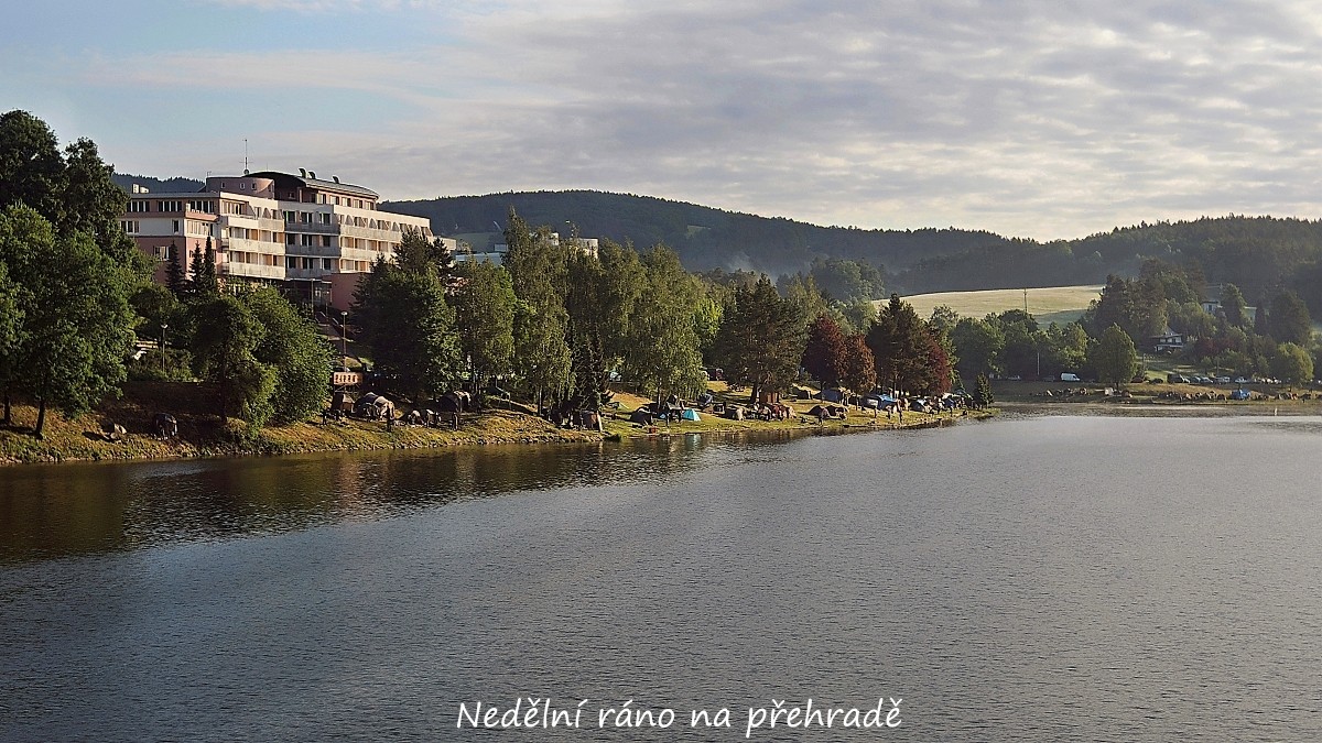 V neděli jsme si se Zdenou a Aničkou přivstaly a šly na přehradu. Bylo nádherné ráno. Po návratu jsme se sbalily, nasnídaly, naložily zavazadla, rozloučily se s paní domu a odjely do lázní na hlavní bod víkendu, Otvírání a svěcení pramenů. Jelikož zde zaparkovat bylo zcela nemožné, tak Anička opět musela až na parkoviště daleko za nádražím. Pak ještě jednu cestu s Olinkou, která odjížděla dříve, a nakonec se zbytkem výpravy. Když pominu drobné pochůzky po lázeňském areálu, cestu k Ogarovi a zpět, na přehradu a zpět, tak pro náš komfort Anička během víkendu nachodila cca 20 km, za což jí patří VELKÝ DÍK. Z vlastních zkušeností s pořádáním podobných akcí vím, že největší odměnou je spokojenost zúčastněných. Tedy Aničko, byl to báječný víkend za který Ti DĚKUJEME!!!