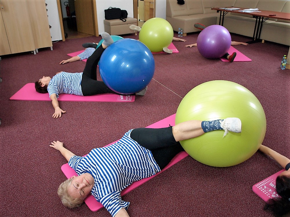 „Cvičení na balónech, samozřejmě, je-li správně prováděné, výrazně zmírní problémy s páteří, účinně uvolňuje ztuhlé klouby a svaly a pomáhá při tréninku rovnováhy. To je zejména pro starší osoby velmi důležité, protože jsou přece jenom častěji ohroženy pády,“ říká paní Alena a dodává: „Cvičením se výrazně daří i upravovat hmotnost. To je zase důležité zejména u diabetiků. A navíc podstatně snižuje míru analgetik užívaných proti bolesti.“